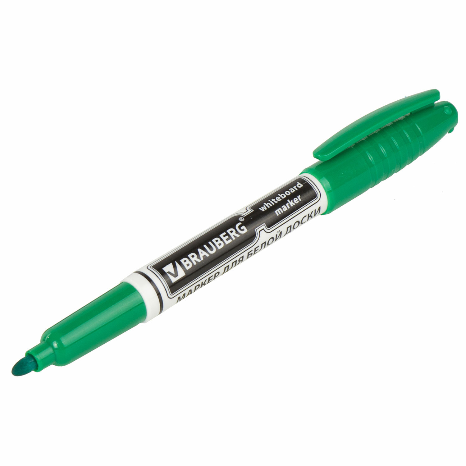 - Маркер стираемый для белой доски ЗЕЛЕНЫЙ, BRAUBERG, 4 мм, с клипом, эргономичный корпус, 150849