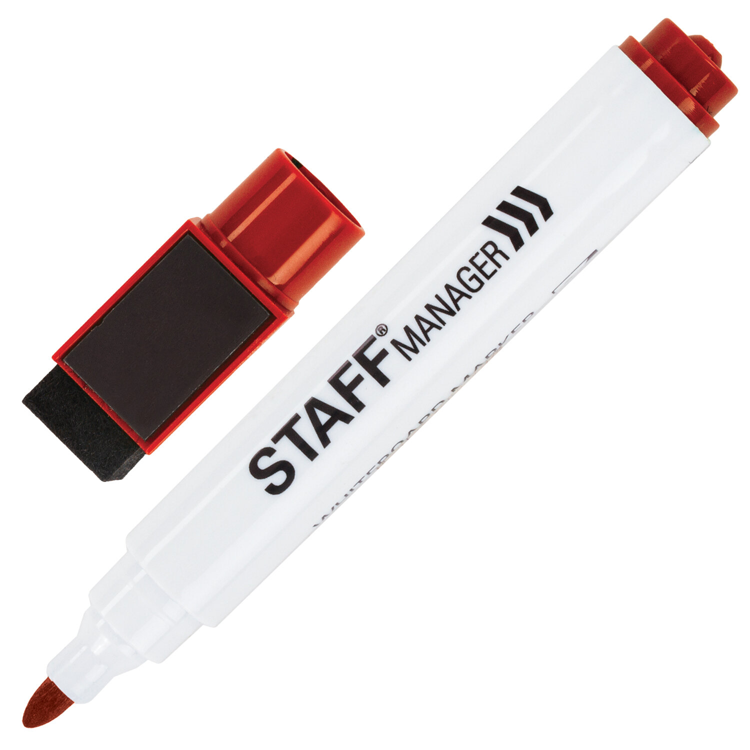 - Маркеры для белой доски на магните со стирателем, НАБОР 4 цвета, STAFF "Manager" WBM-002, 3 мм, 152006