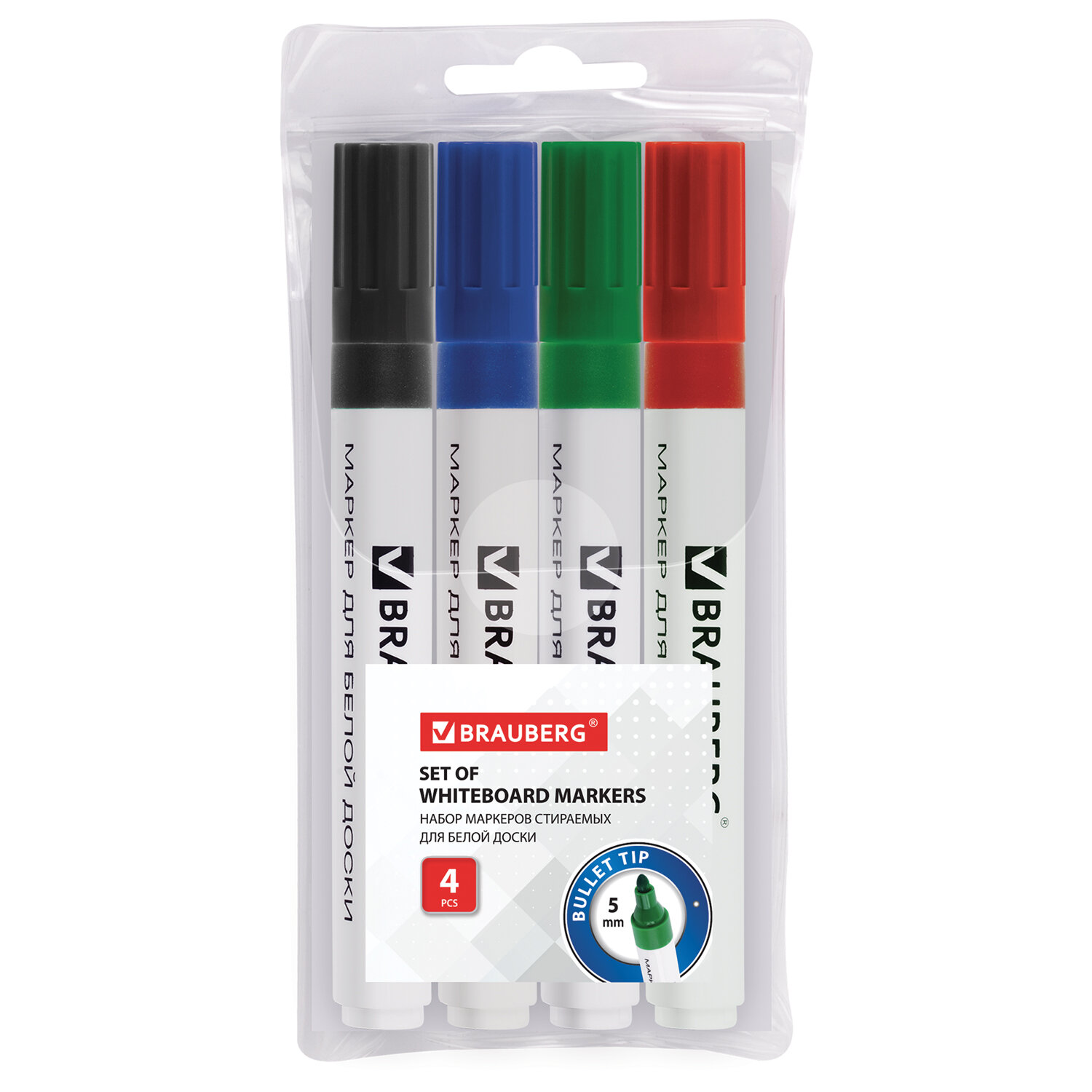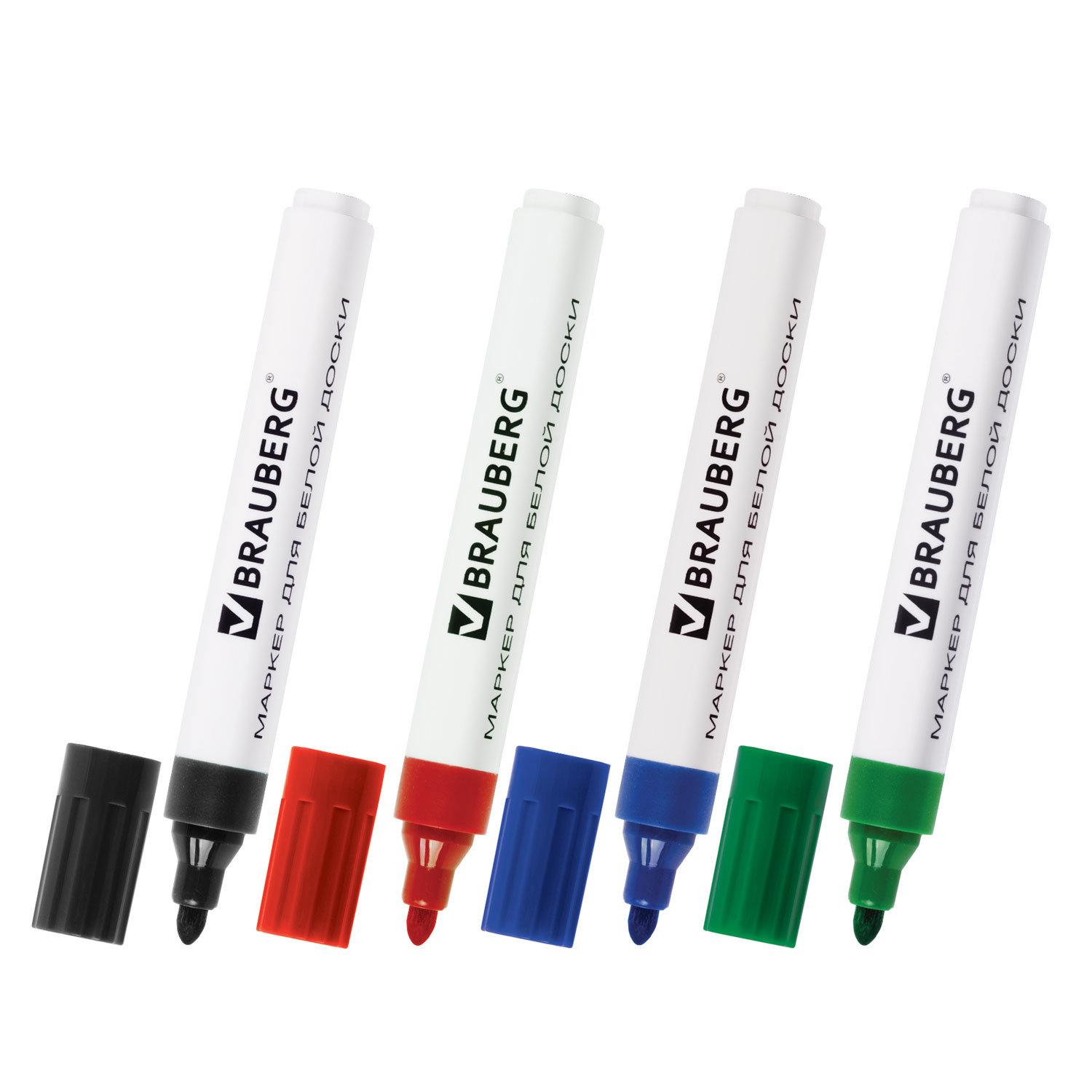- Маркеры стираемые для белой доски НАБОР 4 ЦВЕТА, BRAUBERG, 5 мм, 150417