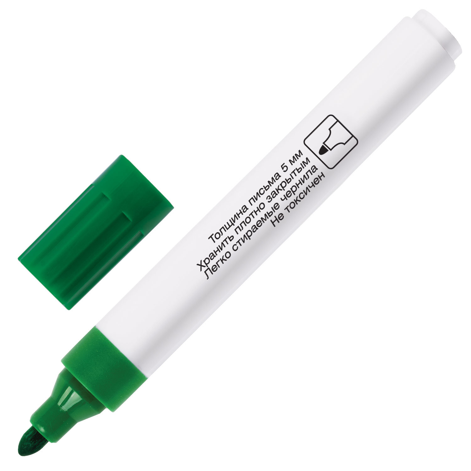 4 цвета в наборе: черный, красный, синий, зеленый. Круглый корпус из пластика, диаметр которого 16 мм. Наконечник круглой формы обеспечивает толщину линии письма 5 мм, что позволяет писать крупным шрифтом, который будет хорошо виден. Основа чернил - водная. Чернила быстро высыхают и не оставляют разводов, легко стираются сухой губкой и не высыхают с открытым колпачком в течение нескольких дней. Изделие не перезаправляется. Цвет колпачка соответствует цвету чернил Маркеры стираемые для белой доски НАБОР 4 ЦВЕТА, BRAUBERG, 5 мм, 150417