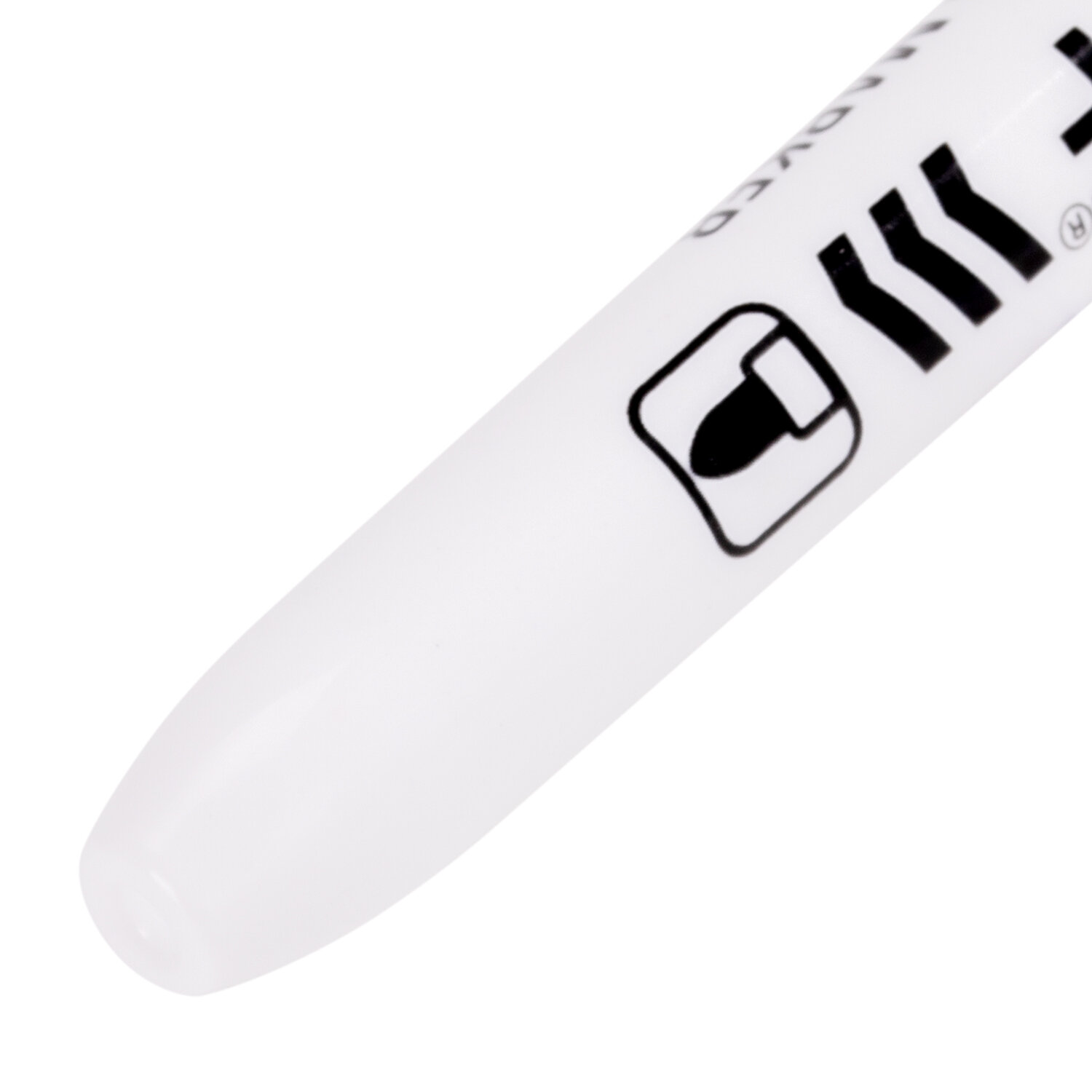 4 цвета в наборе: черный, красный, синий, зеленый. Круглый пластиковый корпус имеет диаметр 17 мм. Наконечник круглой формы обеспечивает толщину линии письма 2-5 мм в зависимости от угла наклона, что позволяет писать как мелким, так и крупным шрифтом. Благодаря спиртовой основе чернила быстро высыхают и не оставляют разводов, легко стираются сухой губкой. Изделие не перезаправляется. Цвет колпачка соответствует цвету чернил.