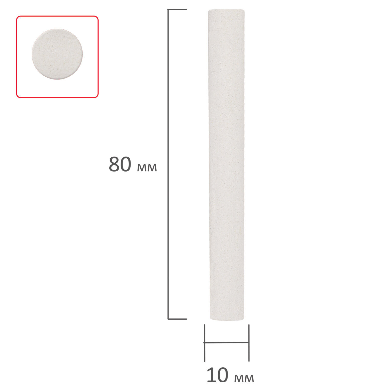 Набор из 10 мелков. Мел имеет морозно-белый цвет без примесей. Изготовлен из высококачественного природного сырья без твердых включений, не портит поверхность досок и не оставляет царапин. Обеспечивает мягкое письмо. Благодаря удобной круглой форме мел удобно держать в руке. Легко смывается с рук. Мел белый круглый мягкий, 10 штук, BRAUBERG, картонная упаковка, европодвес, 272766