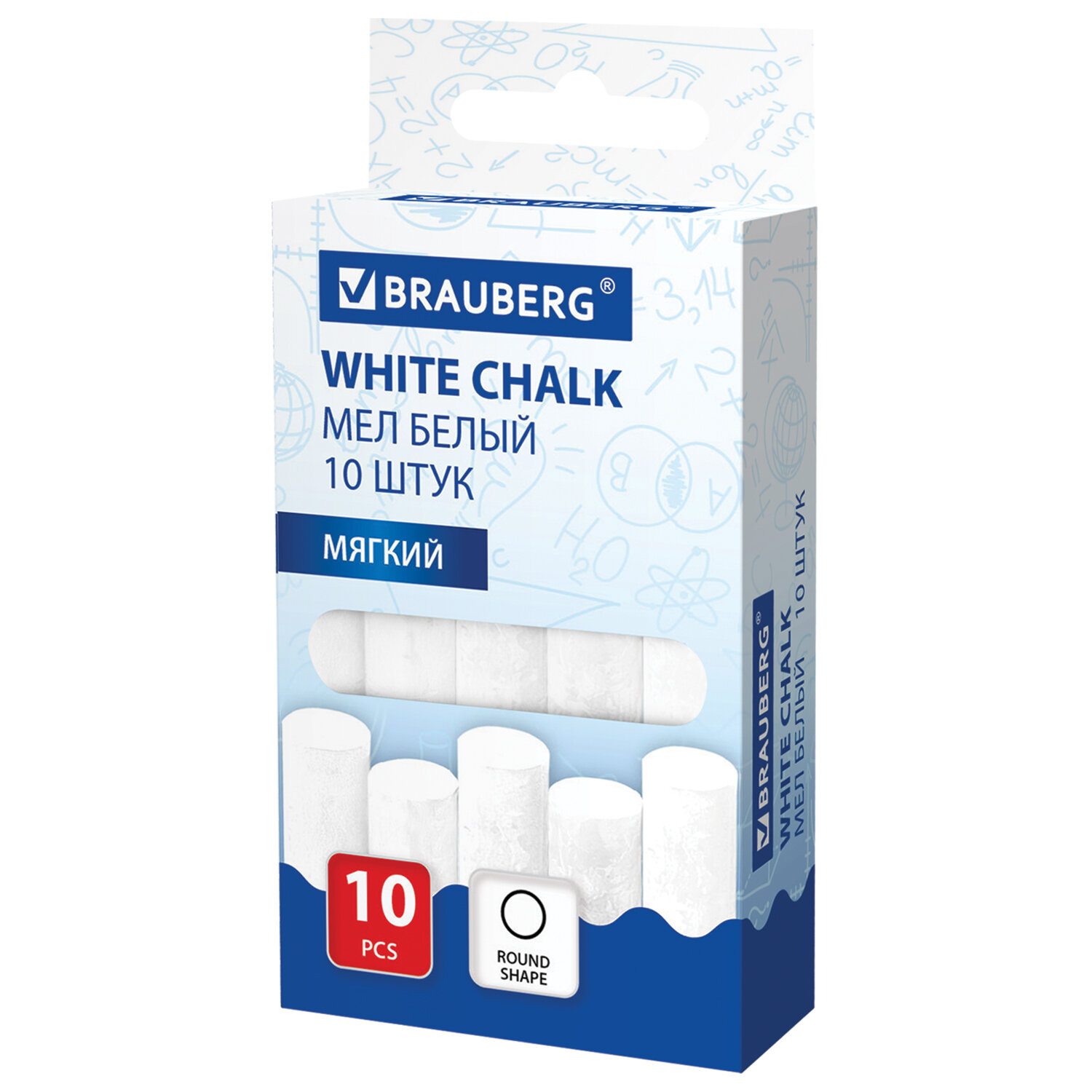 - Мел белый круглый мягкий, 10 штук, BRAUBERG, картонная упаковка, европодвес, 272766