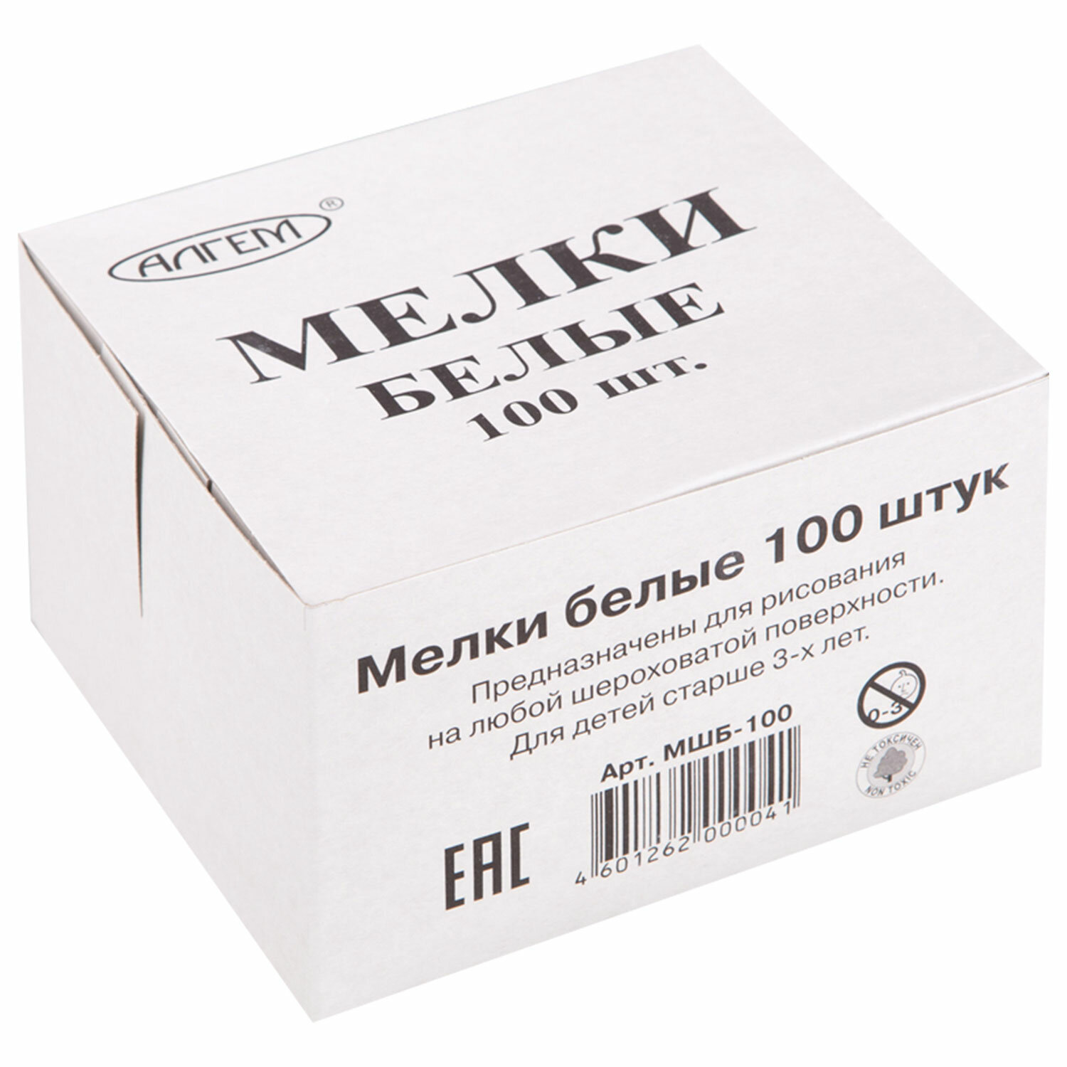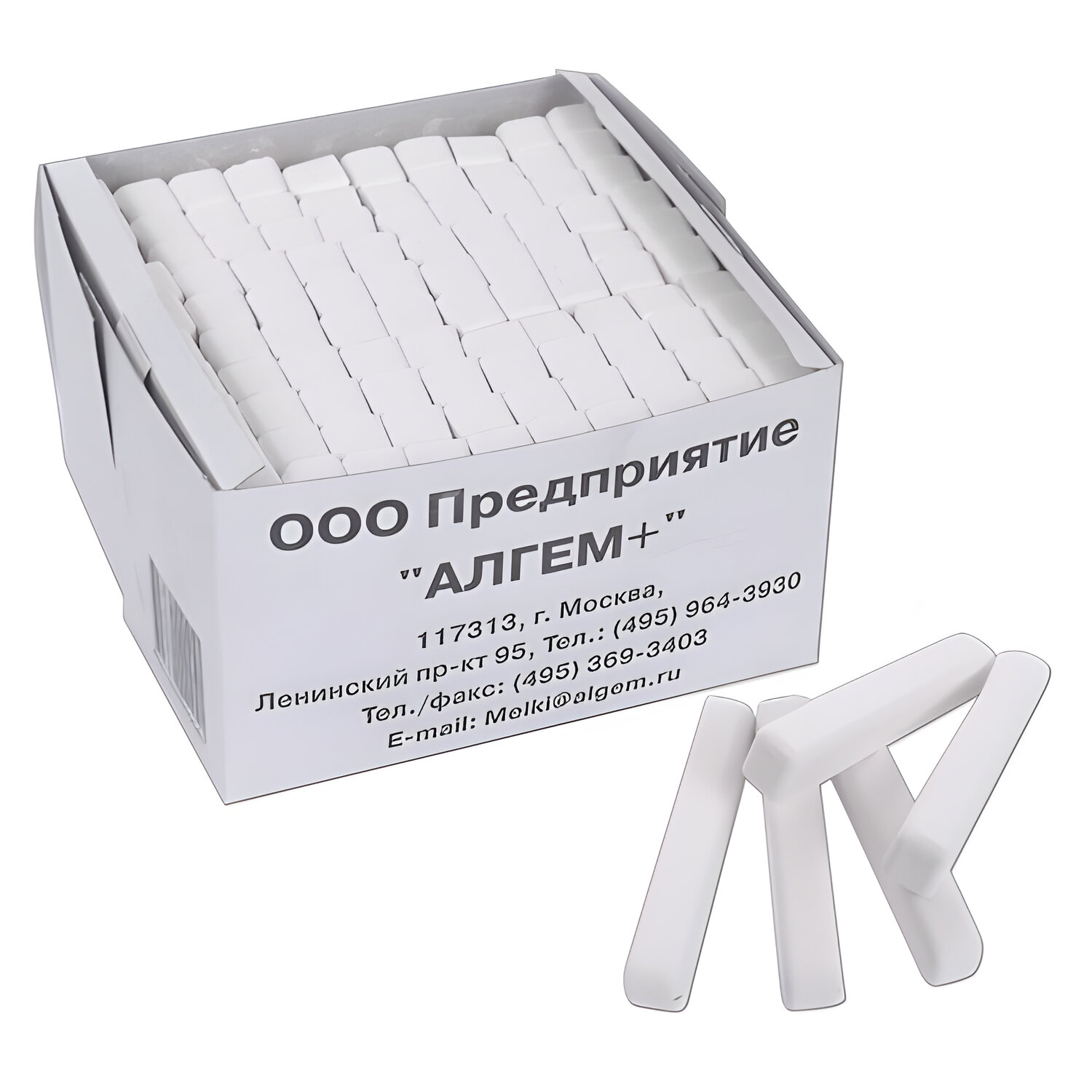 - Мел белый квадратный 100 штук, АЛГЕМ, картонная упаковка, 00041, МШБ 100