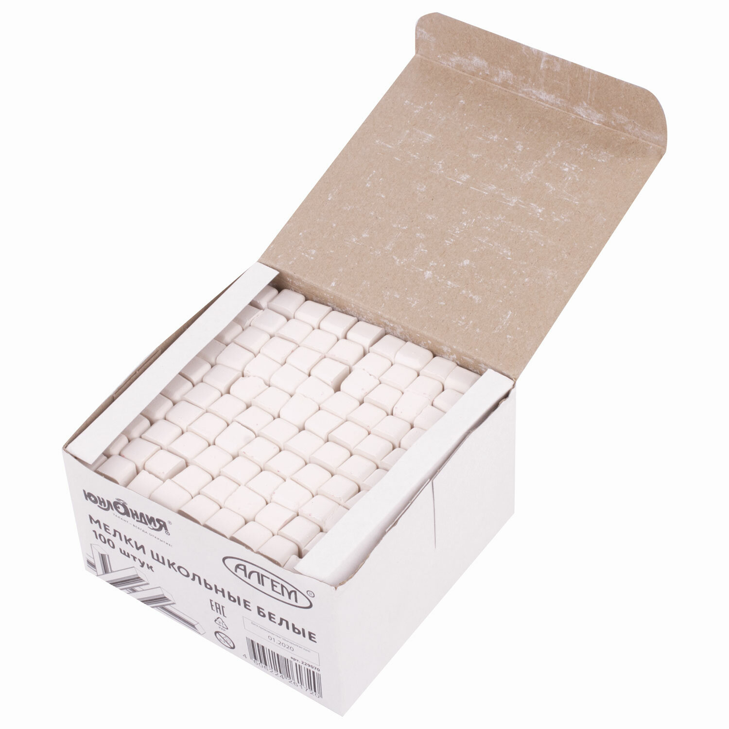 - Мел белый квадратный 100 штук, ЮНЛАНДИЯ (Алгем), картонная упаковка, 229070