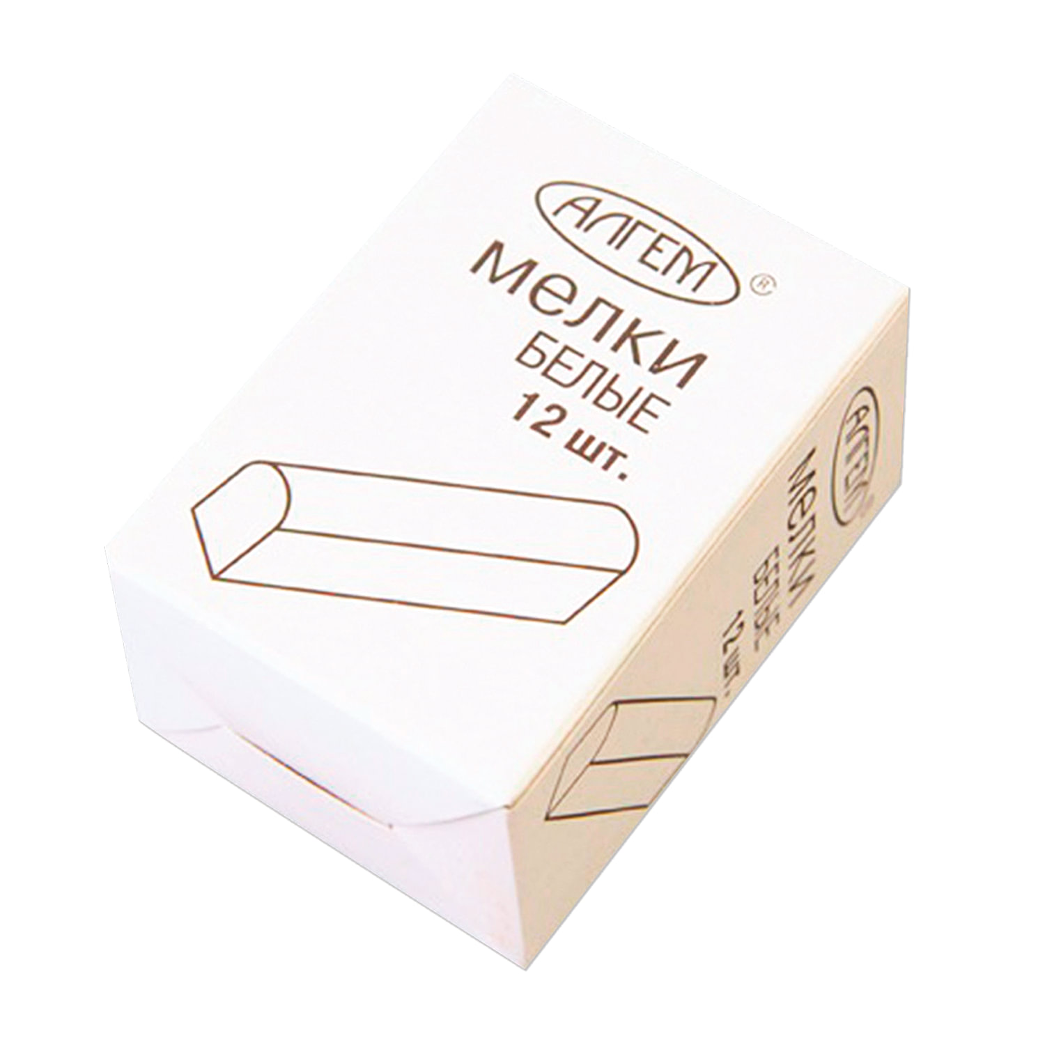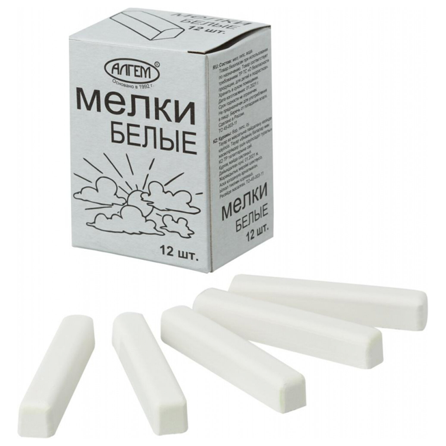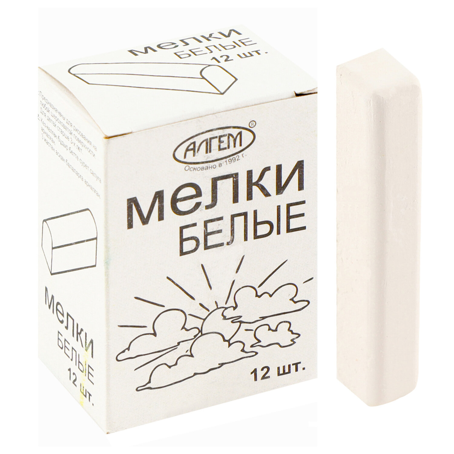 - Мел белый квадратный 12 штук, АЛГЕМ, картонная упаковка, НМБ-12