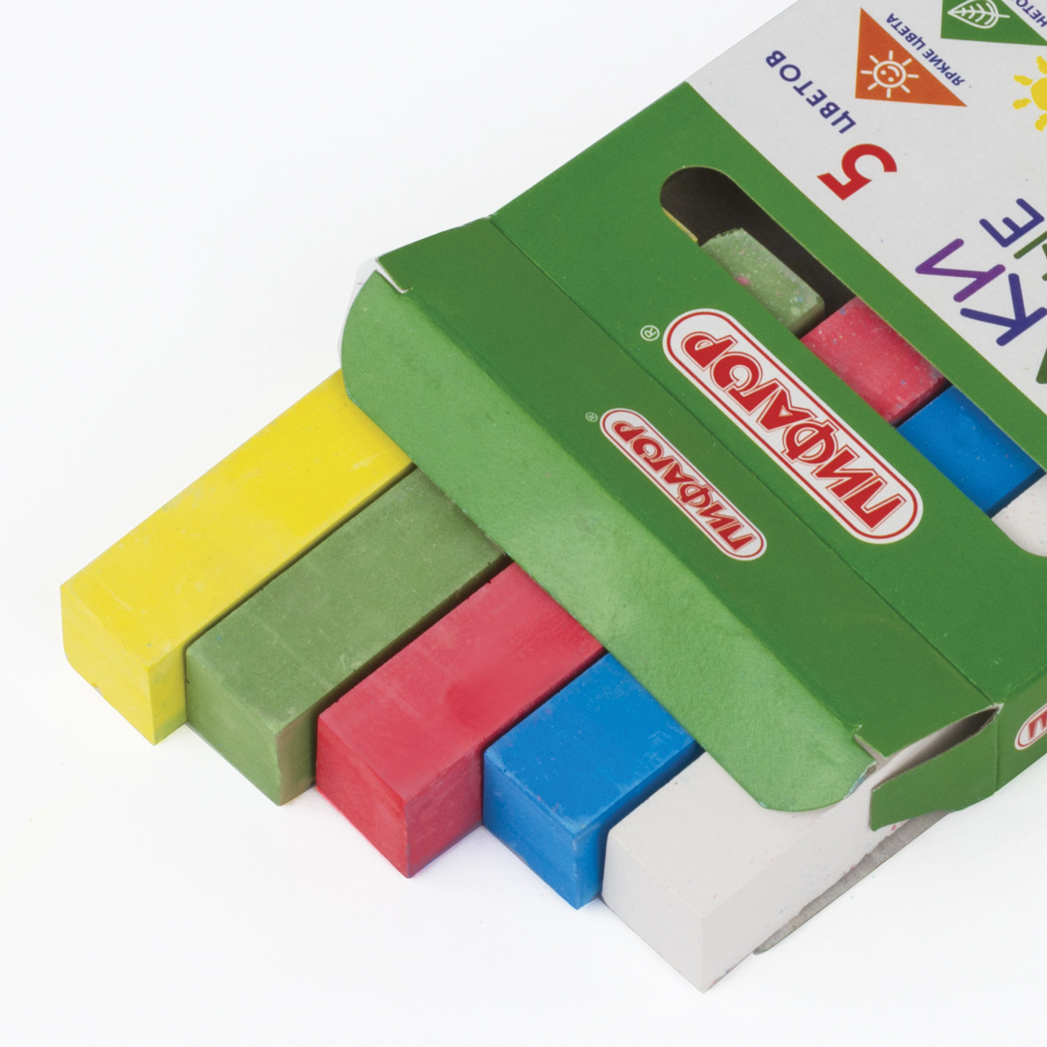 - Мел для рисования на асфальте 5 штук, цветной квадратный, ПИФАГОР, картонная упаковка, европодвес, 221170