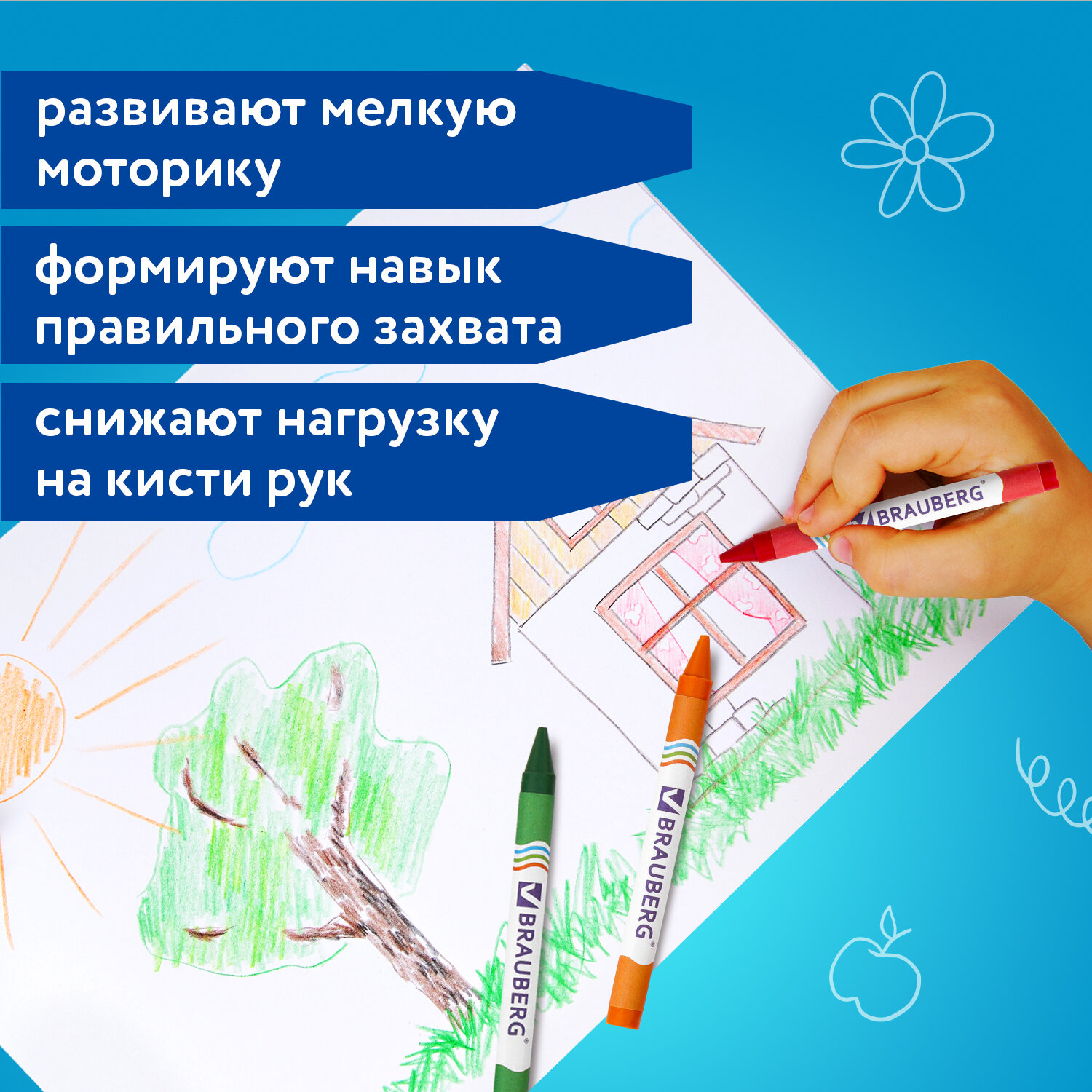 Восковые мелки BRAUBERG, НАБОР 12 цветов, 222962