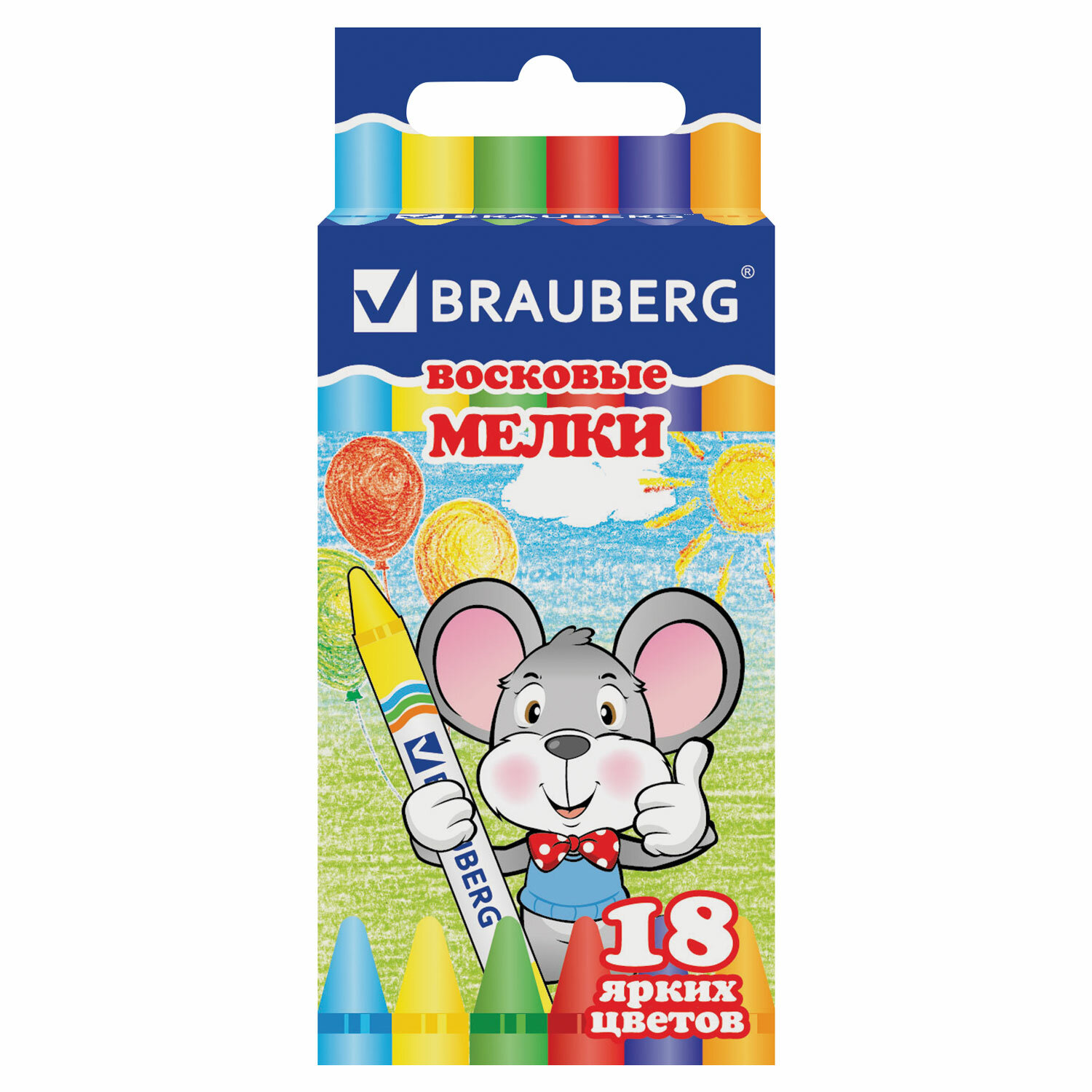 - Восковые мелки BRAUBERG, НАБОР 18 цветов, 222963