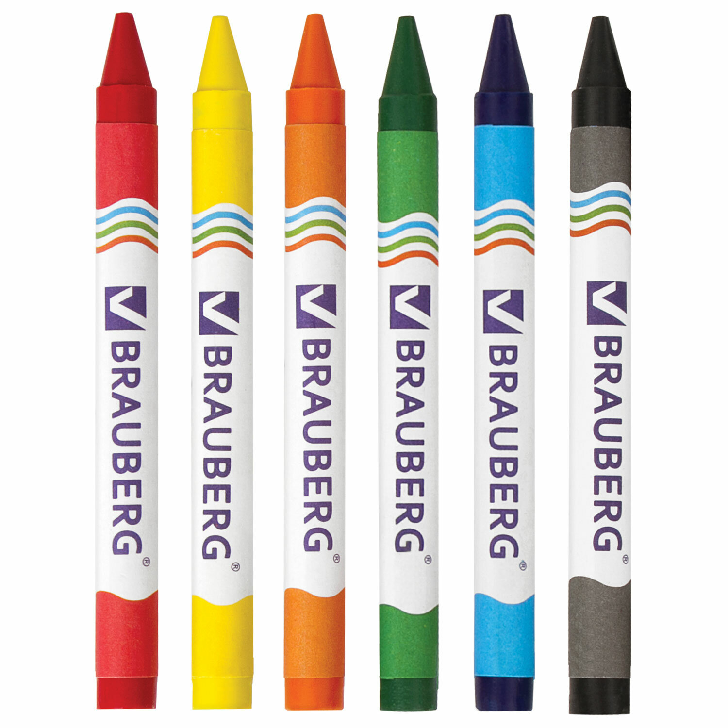 Восковые мелки BRAUBERG, НАБОР 6 цветов, 222961
