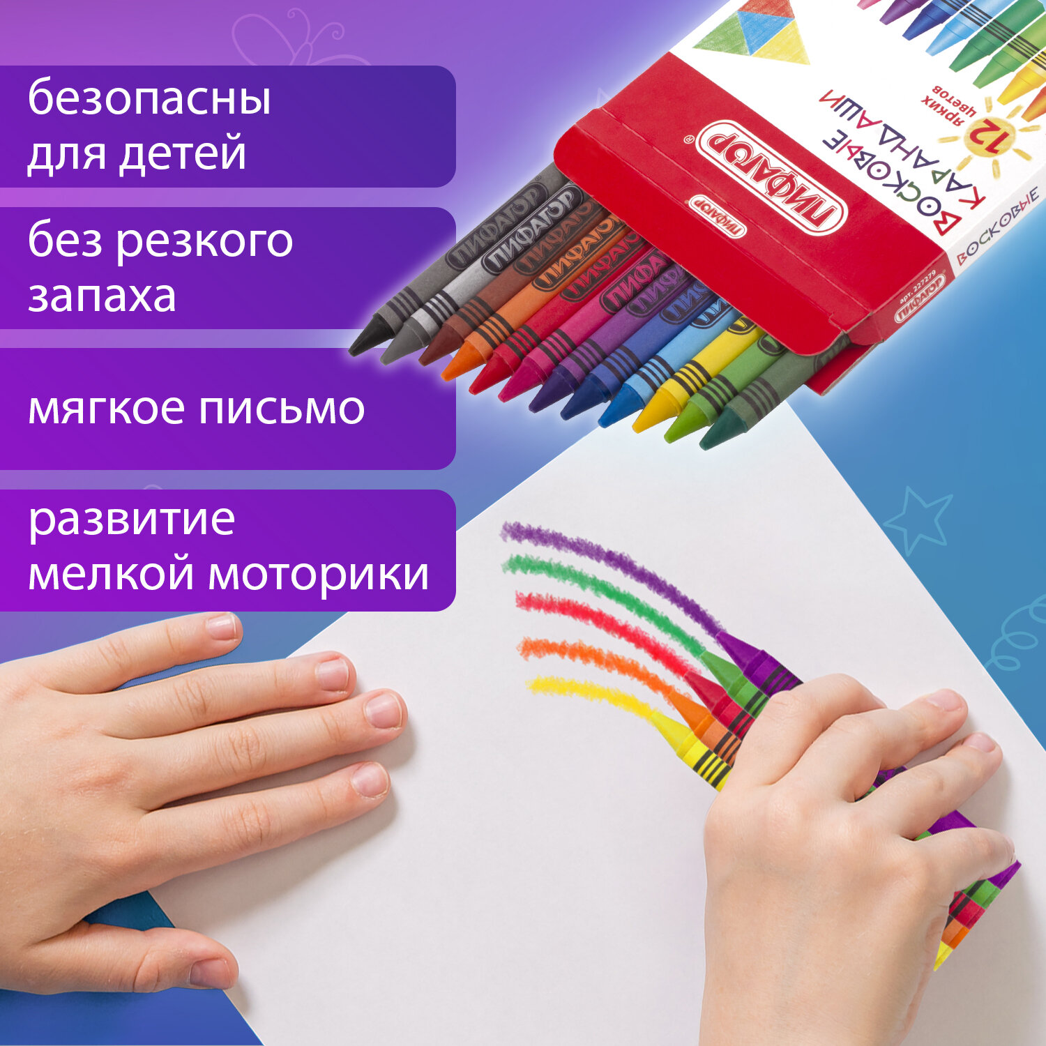 - Восковые мелки ПИФАГОР "СОЛНЫШКО", НАБОР 12 цветов, 227279