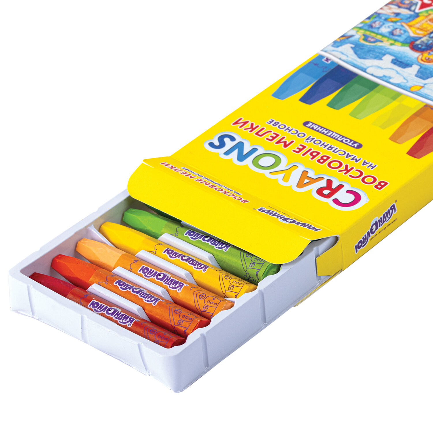 - Восковые мелки утолщенные на масляной основе ЮНЛАНДИЯ "ДОМИКИ", 12 цветов, 273090