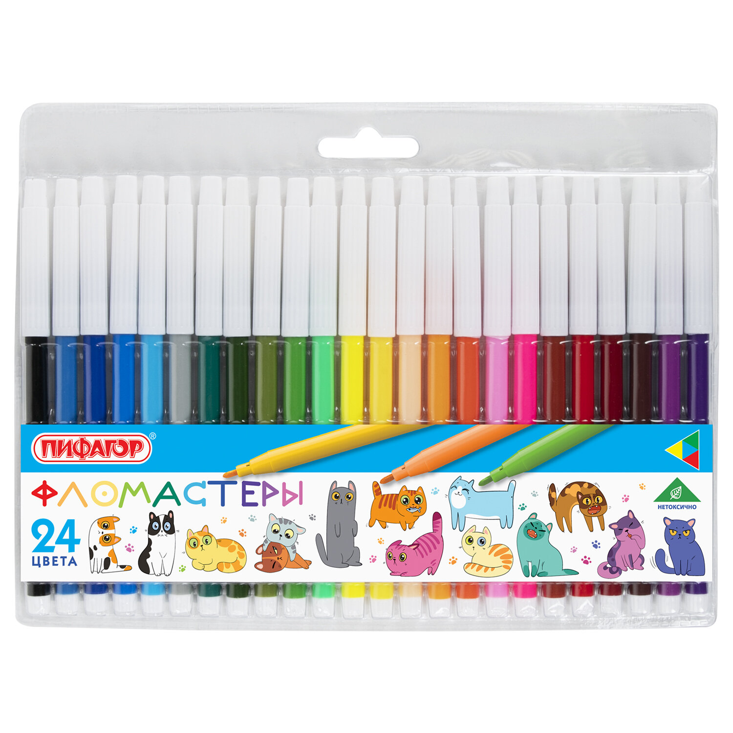 - Фломастеры ПИФАГОР "ВЕСЕЛЫЕ ПИТОМЦЫ", 24 цвета, невентилируемый колпачок, 152454