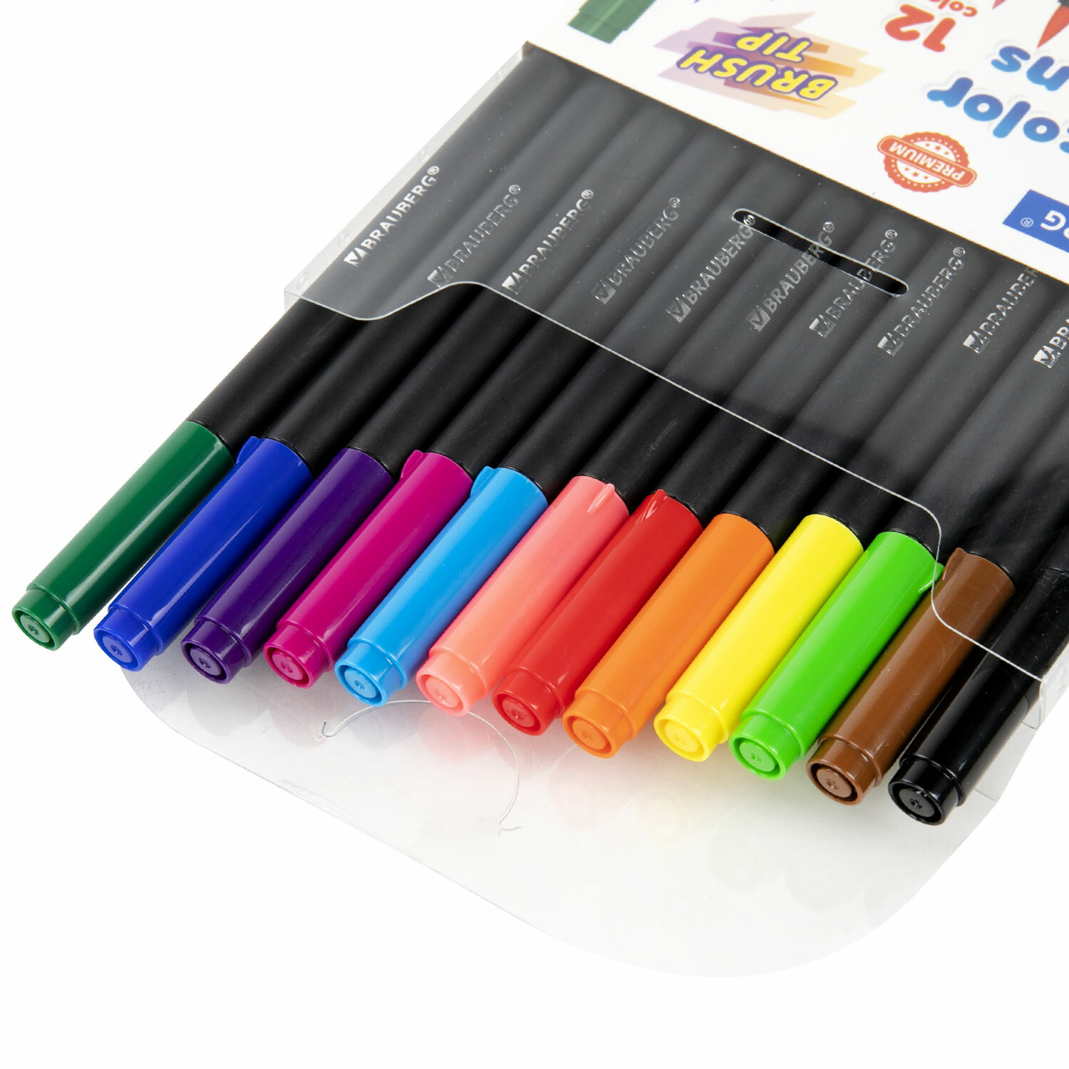- Фломастеры с наконечником-кистью 12 цветов, вентилируемый колпачок, BRAUBERG "PREMIUM", 152195