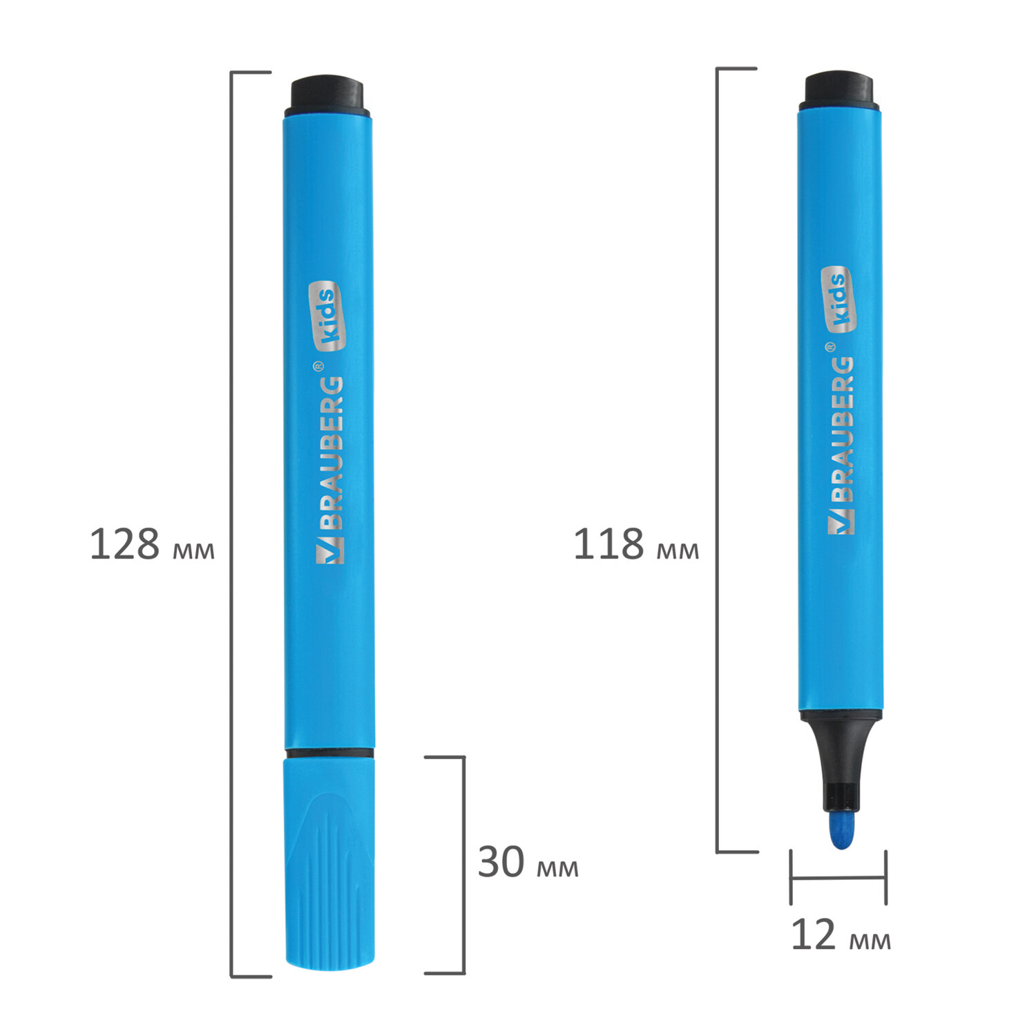 Набор из 24 фломастеров в пластиковом кейсе с удобной ручкой и надежными защелками. Фломастеры размещены в отдельных ячейках кейса, которые препятствуют их выпадению. Трехгранные утолщенные фломастеры из пластика длиной 128 мм и диаметром 12 мм. Круглый наконечник из фетра с линией письма 1-3 мм удобен для рисования и раскрашивания. Длина письма составляет 350 м: такого расхода хватит надолго. Фломастеры изготовлены на водной основе, поэтому они безопасны и легко смываются с большинства материалов и кожи. Наконечник устойчив к продавливанию, не проваливается внутрь корпуса. Колпачок имеет специальные прорези для вентиляции, которые способствуют прохождению воздуха при попадании в дыхательные пути малыша. Рекомендованы для детей от 3-х лет. Фломастеры в пластиковом кейсе трехгранные утолщенные УЛЬТРАСМЫВАЕМЫЕ, BRAUBERG KIDS, 24 цвета, 152192