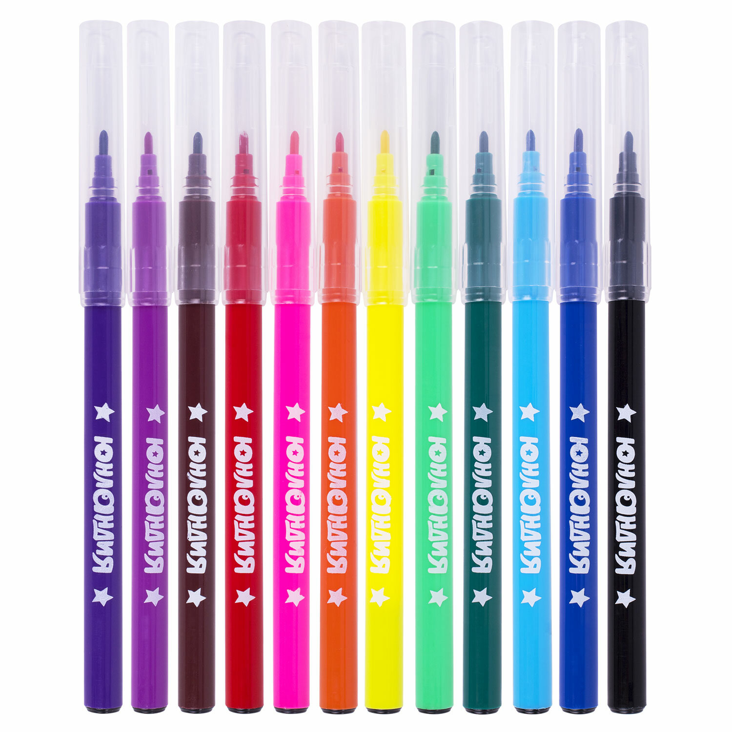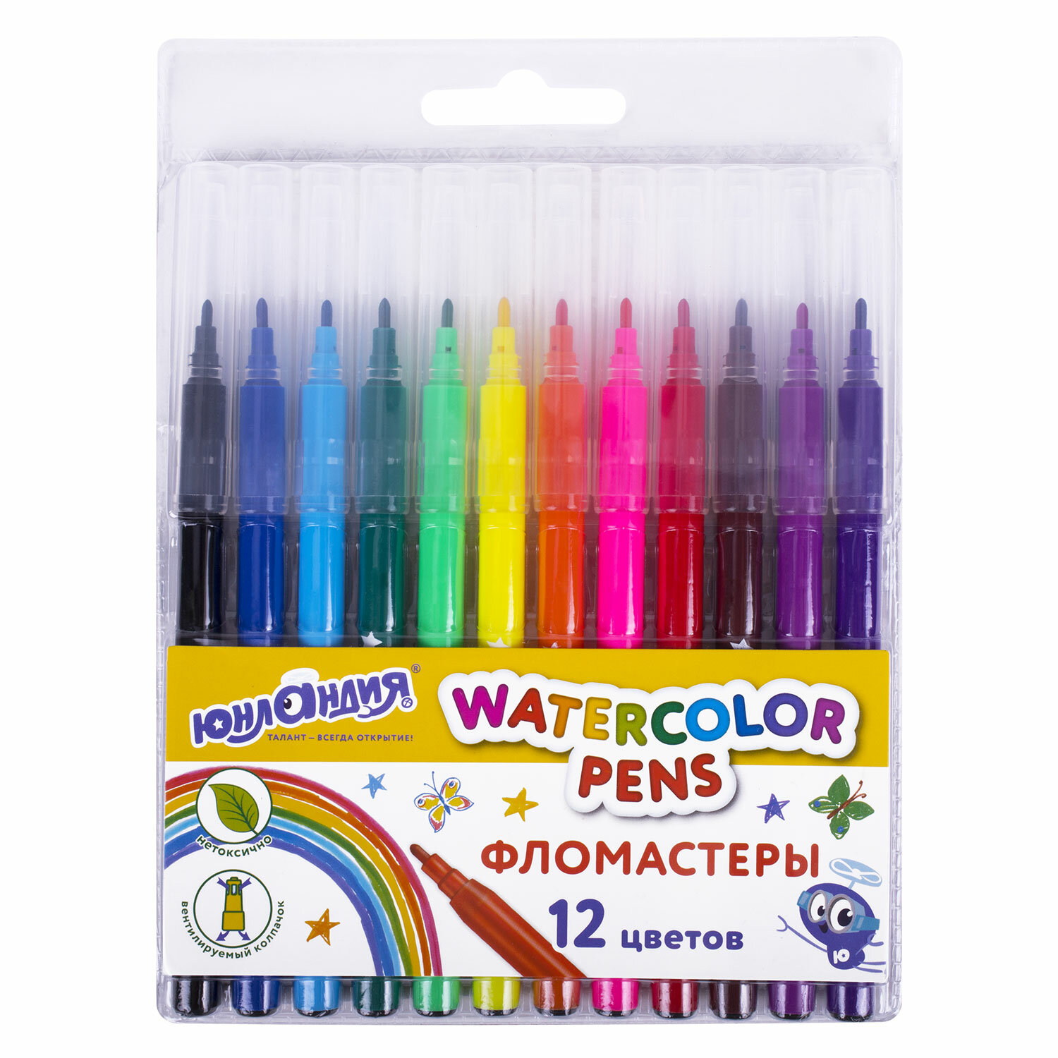 - Фломастеры ЮНЛАНДИЯ 12 цветов "КЛАССНЫЕ!", вентилируемый колпачок, ПВХ, 152478