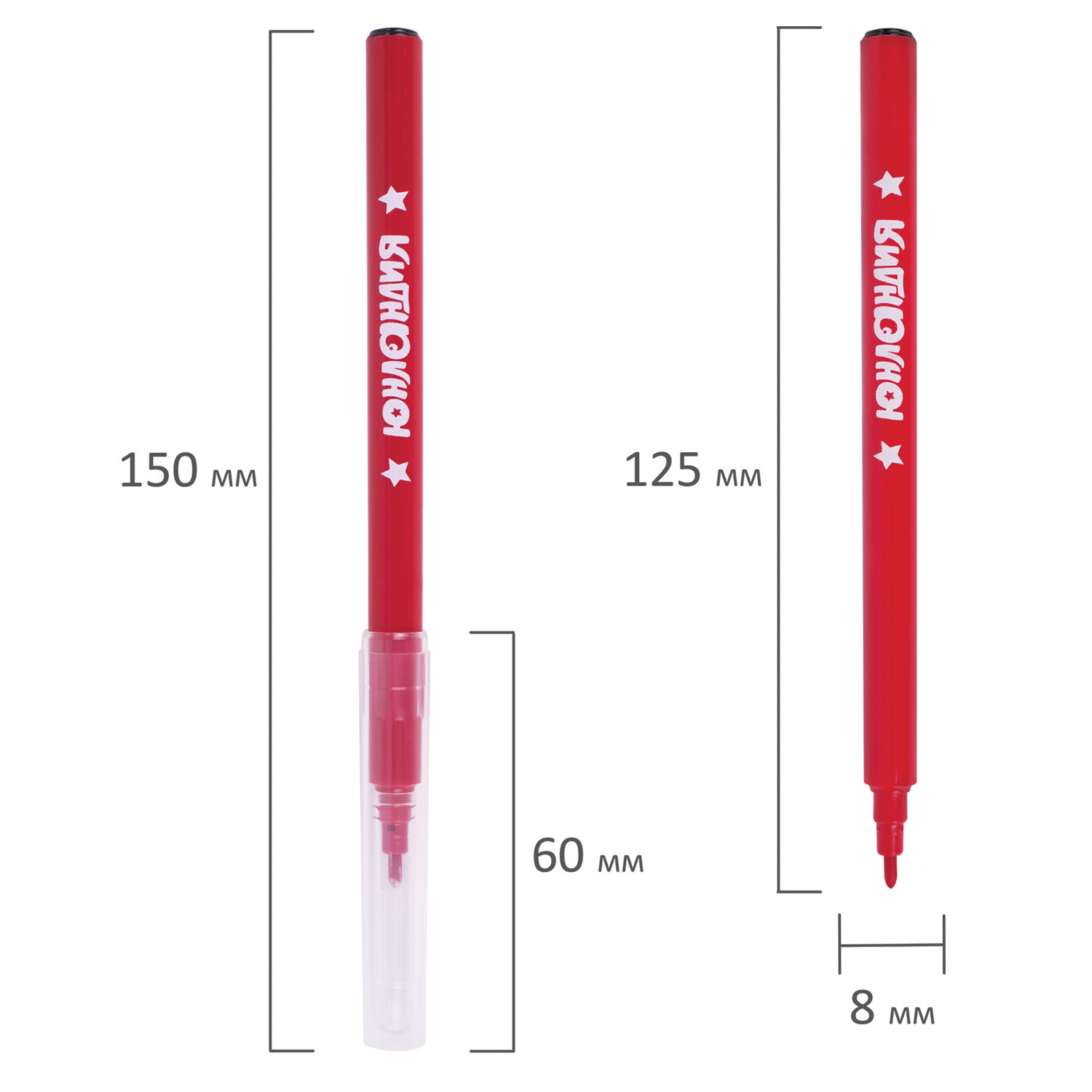 Обладают яркими насыщенными цветами в количестве 12 штук. Удобная круглая форма корпуса, длина которого 150 мм, а диаметр - 8 мм. Благодаря толщине линии письма 1 мм и диаметру пишущего узла 2,1 мм процесс раскрашивания становится легким. Длина письма составляет 600 м – такого расхода хватит надолго.