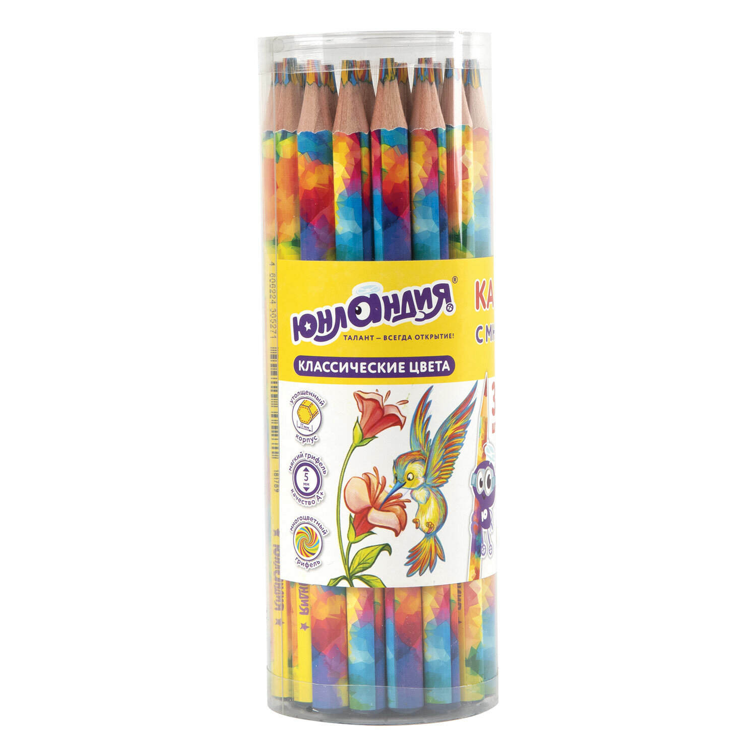 - Карандаш с многоцветным грифелем ЮНЛАНДИЯ MAGIC, 1 шт., классические цвета, шестигранный, утолщенный грифель 5 мм, натуральное дерево,181789