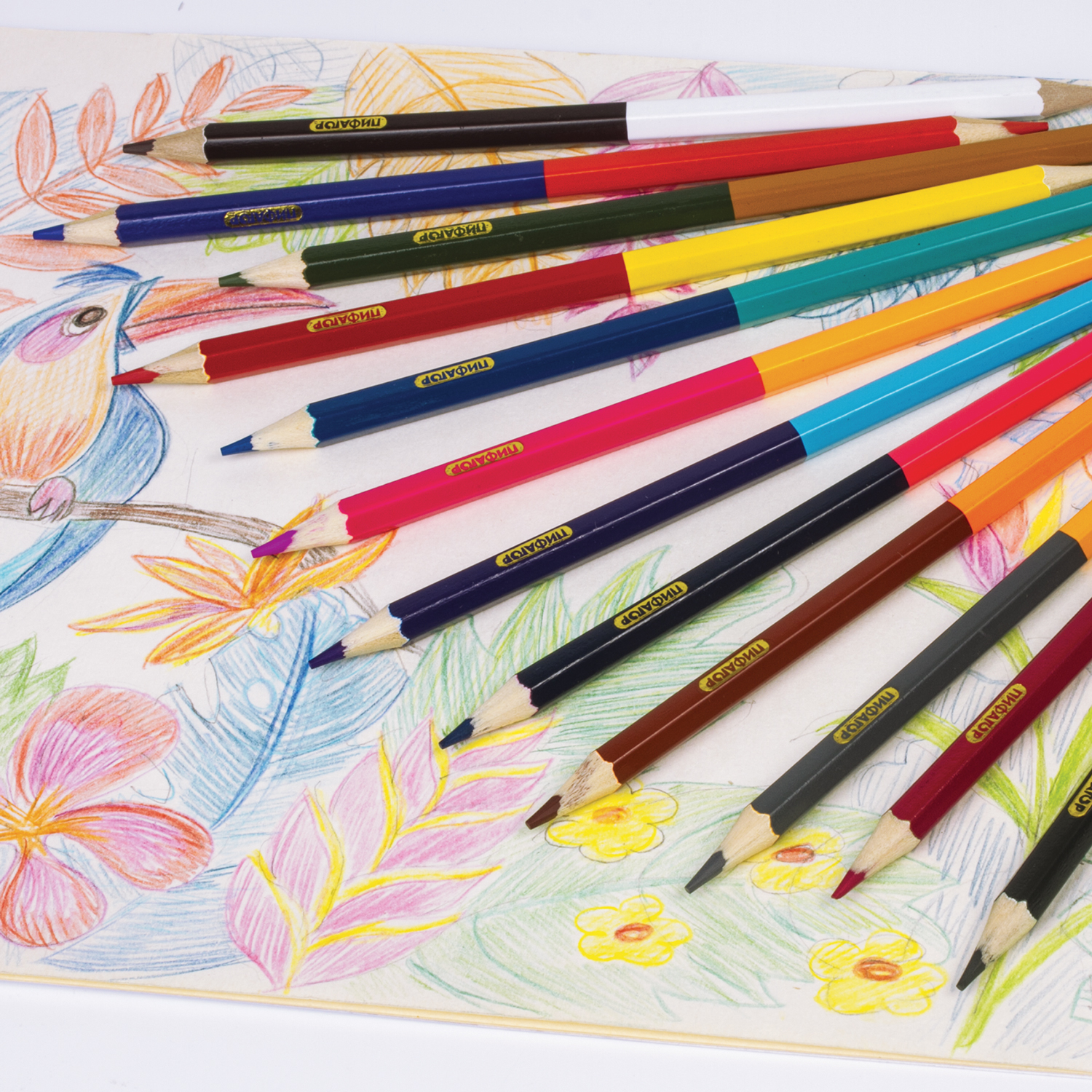 Набор состоит из 12 карандашей и 24 цветов: черный-белый, синий-красный, алый-желтый, бордовый-оранжевый, розовый-темно-синий, фуксия-канареечный, голубой-фиолетовый, зеленый-коричневый, персиковый-серый, бирюзовый-синий, салатовый-пурпурный, коричневый-темно-зеленый. Шестигранная форма сечения корпуса позволяет не скатываться карандашу с поверхности стола во время занятий рисованием. Они изготовлены из высокосортной белой древесины ценных пород и имеют лакированный корпус. Качество древесины и исполнения гарантируют легкую заточку. Грифель из натуральных материалов и пигментов диаметром 3 мм обладает повышенной прочностью. Все карандаши заточены с двух сторон и поставляются в картонной упаковке с европодвесом. Карандаши двусторонние ПИФАГОР 12 штук, 24 цвета, шестигранные, грифель 3 мм, натуральное дерево, 180244