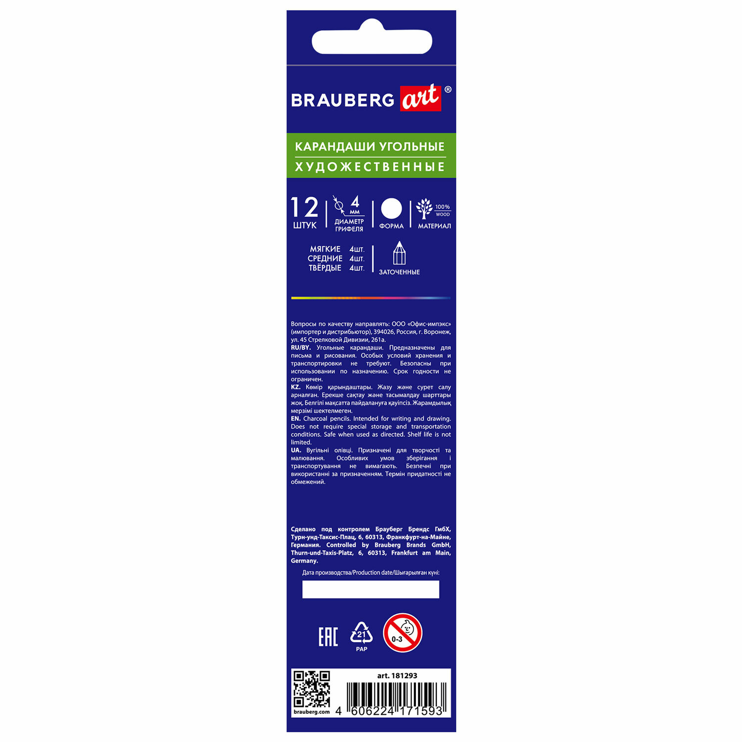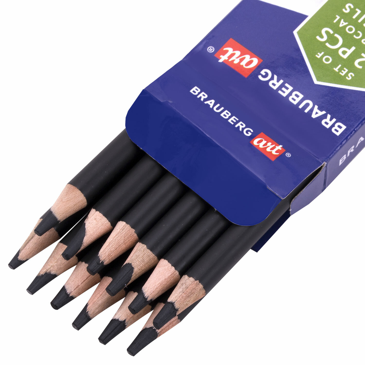 - Карандаши (НАБОР 12 штук) угольные BRAUBERG ART CLASSIC, (МЯГКИЙ, СРЕДНИЙ, ТВЕРДЫЙ), 181293