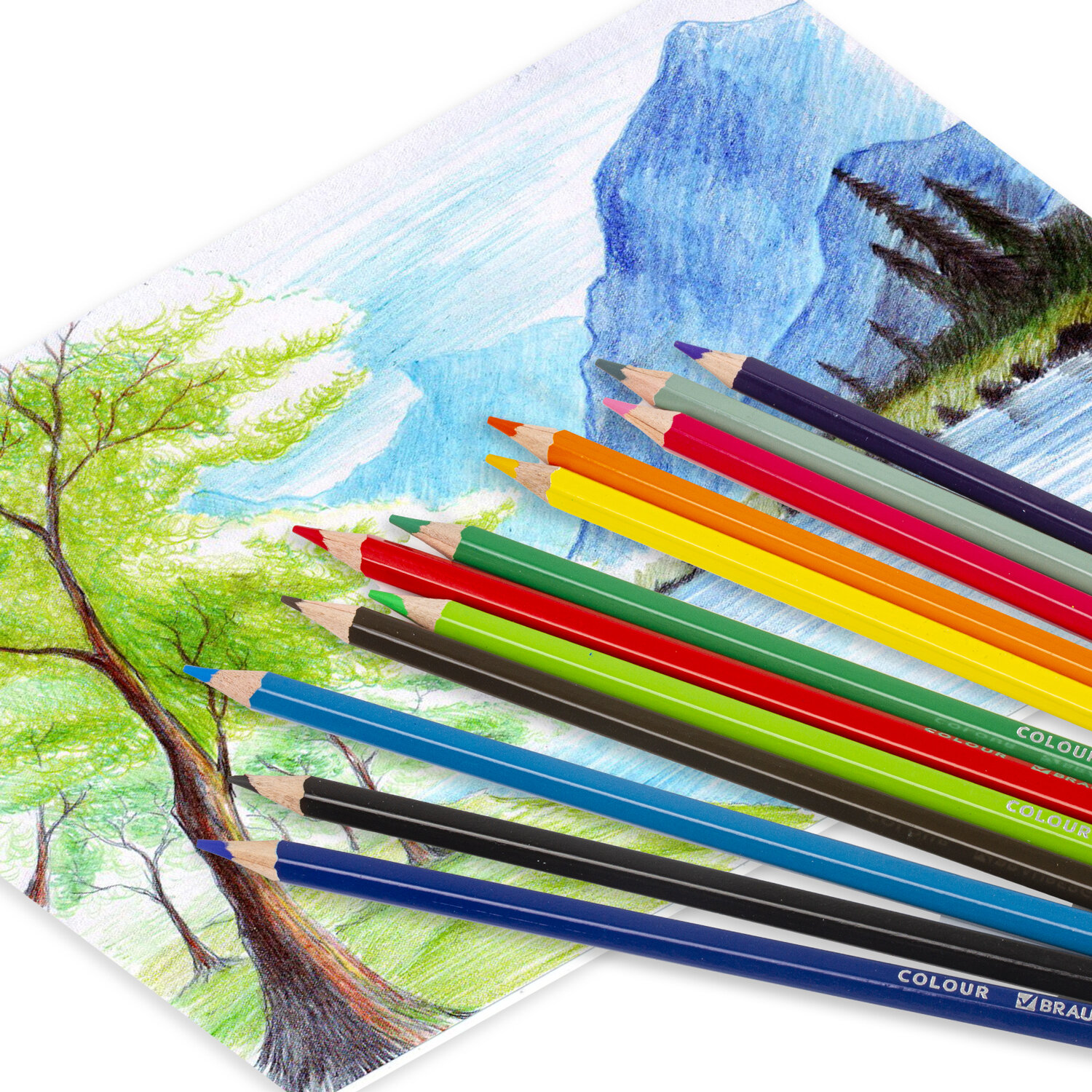 - Карандаши цветные BRAUBERG PREMIUM, 12 цветов, шестигранные, грифель 3,3 мм, натуральное дерево, 181656