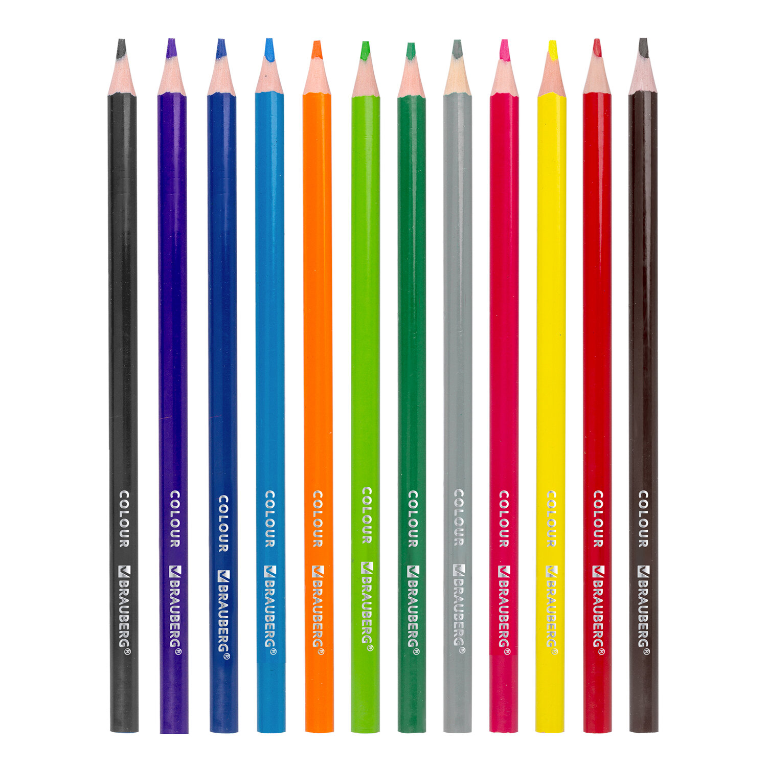 - Карандаши цветные BRAUBERG PREMIUM, 12 цветов, трехгранные, грифель 3 мм, 181661