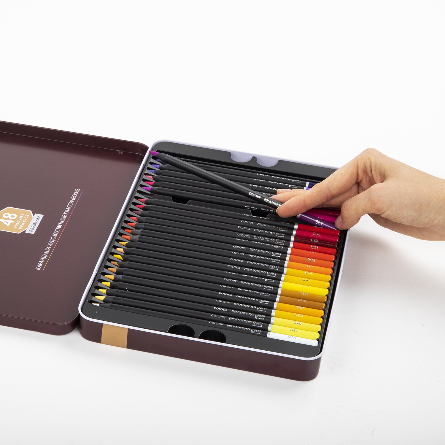 - Карандаши цветные художественные BRAUBERG ART PREMIERE, НАБОР 48 цветов, 4 мм, металл кейс, 181694