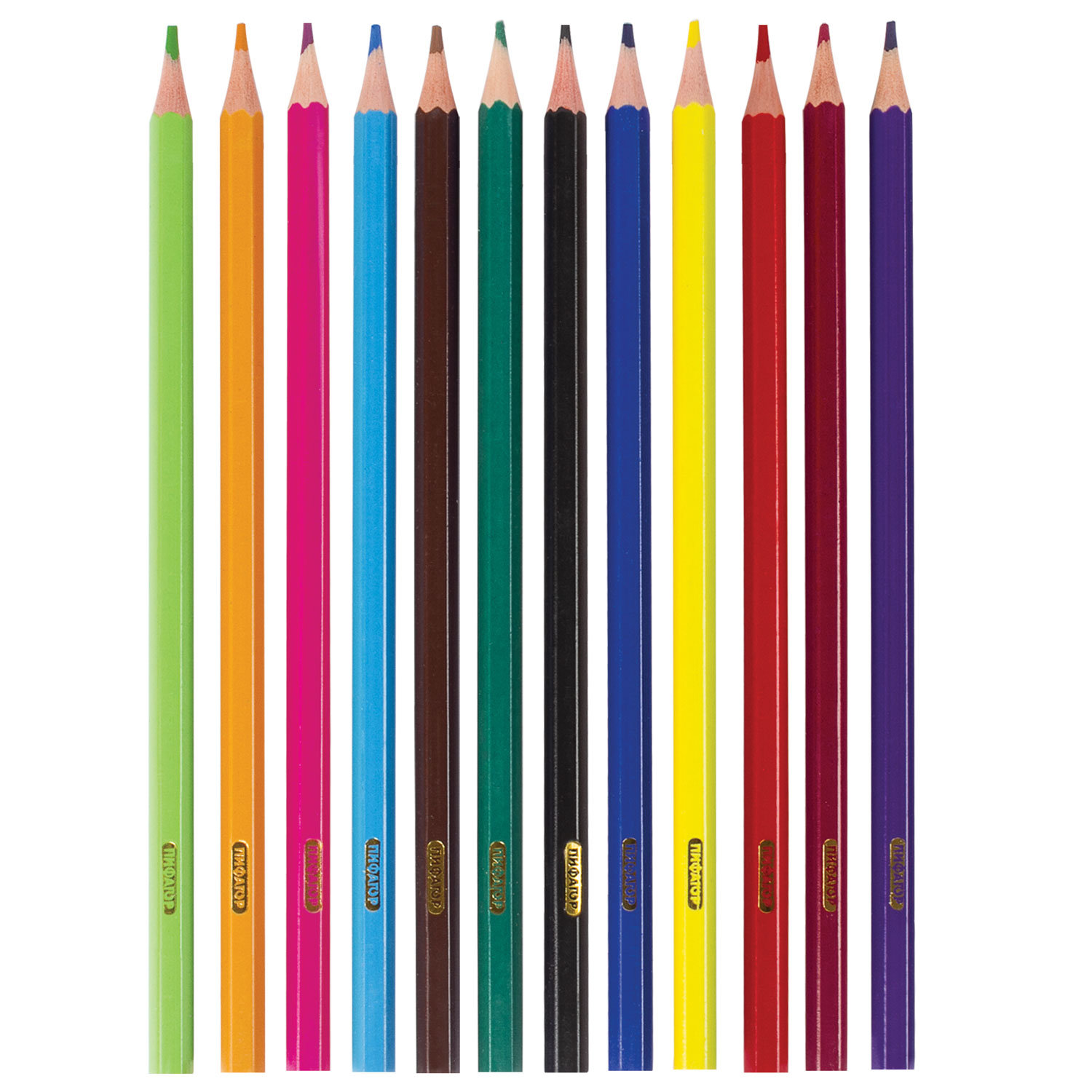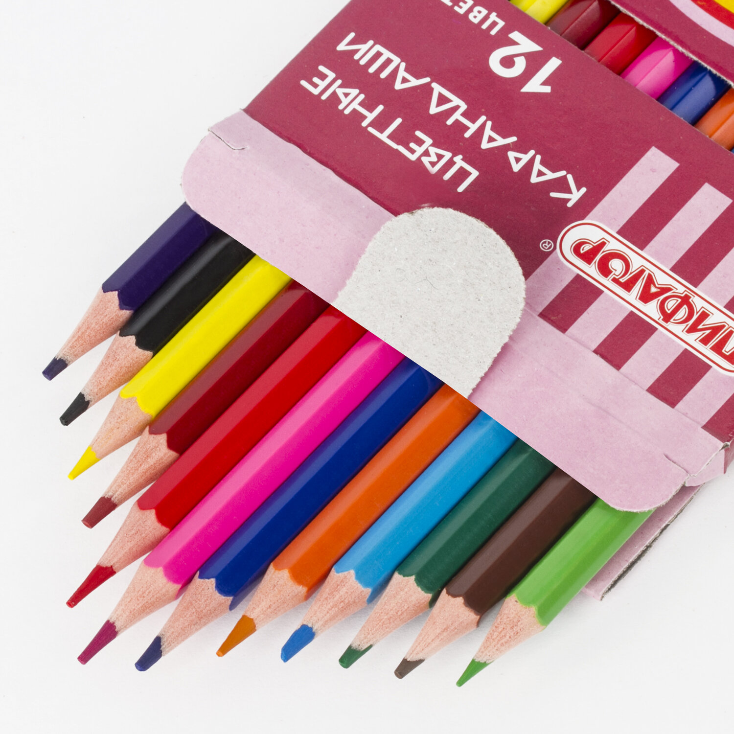 Набор состоит из 12 цветов: розовый, красный, желтый, оранжевый, салатовый, зеленый, голубой, синий, фиолетовый, коричневый, серый, черный. Шестигранная форма сечения корпуса позволяет карандашу не скатываться с поверхности стола во время занятий рисованием. Карандаши изготовлены из пластика и имеют лакированный корпус, который при разломе не образует острые края и безопасен для детей. Легко затачиваются. Грифель диаметром 2,65 мм обладает повышенной прочностью. Все карандаши заточены и поставляются в картонной упаковке с европодвесом. Карандаши цветные ПИФАГОР "ФЕЯ", 12 цветов, шестигранные, 181338