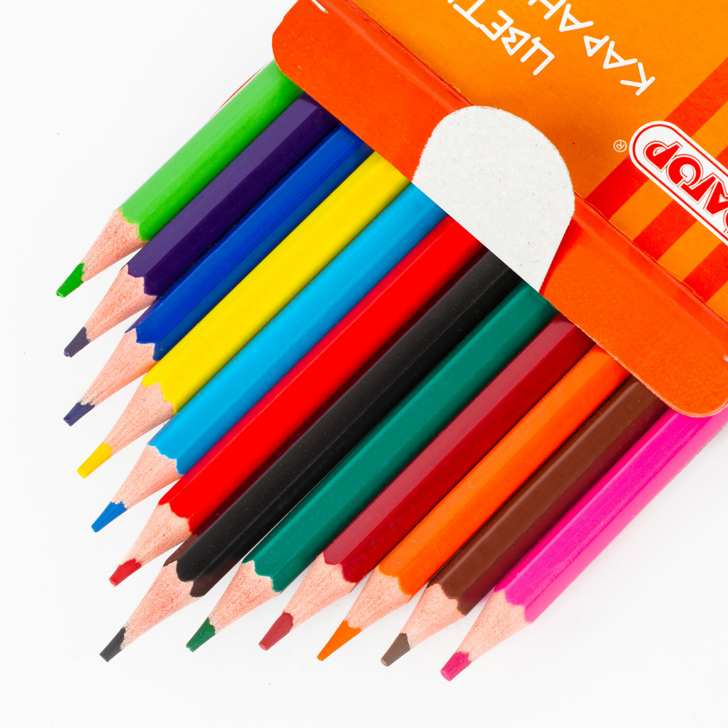 Набор состоит из 12 цветов: розовый, красный, желтый, оранжевый, салатовый, зеленый, голубой, синий, фиолетовый, коричневый, бежевый, черный. Шестигранная форма сечения корпуса позволяет карандашу не скатываться с поверхности стола во время занятий рисованием. Карандаши изготовлены из пластика и имеют лакированный корпус, который при разломе не образует острые края и безопасен для детей. Легко затачиваются. Грифель диаметром 2,65 мм обладает повышенной прочностью. Все карандаши заточены и поставляются в картонной упаковке с европодвесом. Карандаши цветные ПИФАГОР "КОТИК", 12 цветов, шестигранные, 181340