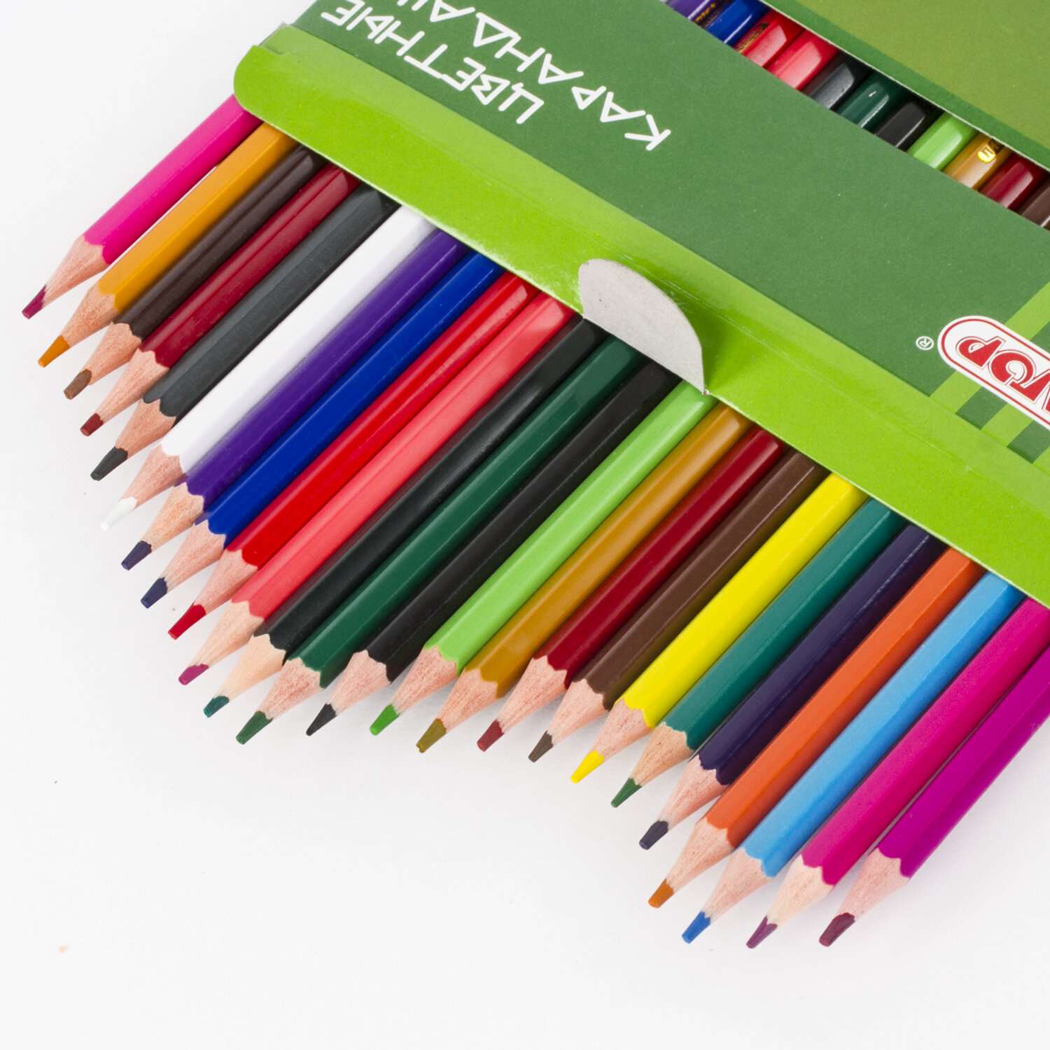 Набор состоит из 24 цветов: белый, каштановый, темно-коричневый, бежевый, малиновый, розовый, коричневый, коралловый, красный, персиковый, серый, оранжевый, канареечный, желтый, салатовый, светло-зеленый, бирюзовый, зеленый, темно-синий, темно-зеленый, синий, фиолетовый, сиреневый, черный. Шестигранная форма сечения корпуса позволяет карандашу не скатываться с поверхности стола во время занятий рисованием. Карандаши изготовлены из пластика и имеют лакированный корпус, который при разломе не образует острые края и безопасен для детей. Легко затачиваются. Грифель диаметром 2,65 мм обладает повышенной прочностью. Все карандаши заточены и поставляются в картонной упаковке с европодвесом. Карандаши цветные ПИФАГОР "ЛЕСНЫЕ ЖИТЕЛИ", 24 цвета, шестигранные, 181336