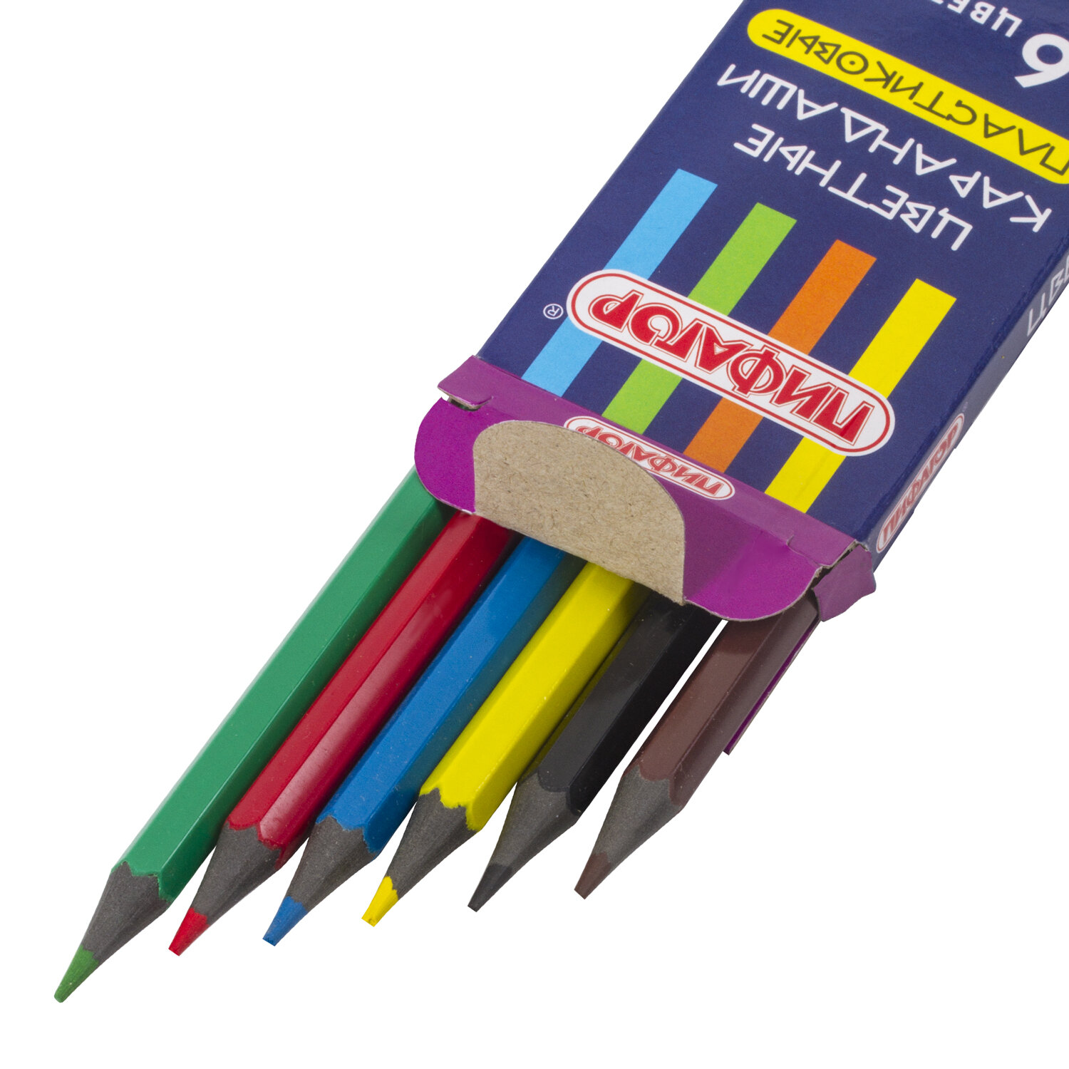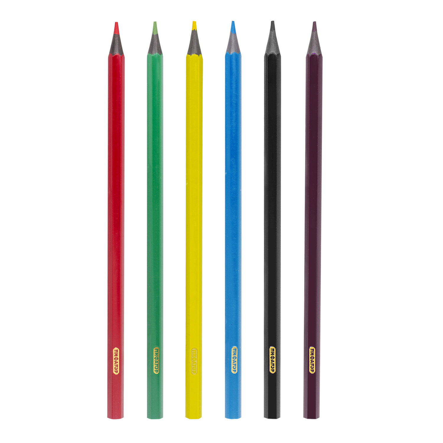 Набор состоит из 6 цветов: красный, желтый, зеленый, голубой, коричневый, черный. Шестигранная форма сечения корпуса позволяет карандашу не скатываться с поверхности стола во время занятий рисованием. Карандаши изготовлены из переработанного пластика и имеют лакированный корпус, который при разломе не образует острые края и безопасен для детей. Легко затачиваются. Грифель диаметром 2,65 мм обладает повышенной прочностью. Все карандаши заточены и поставляются в картонной упаковке с европодвесом. Карандаши цветные ПИФАГОР "СКАЗОЧНЫЙ ГОРОД", 6 цветов, шестигранные, 181582