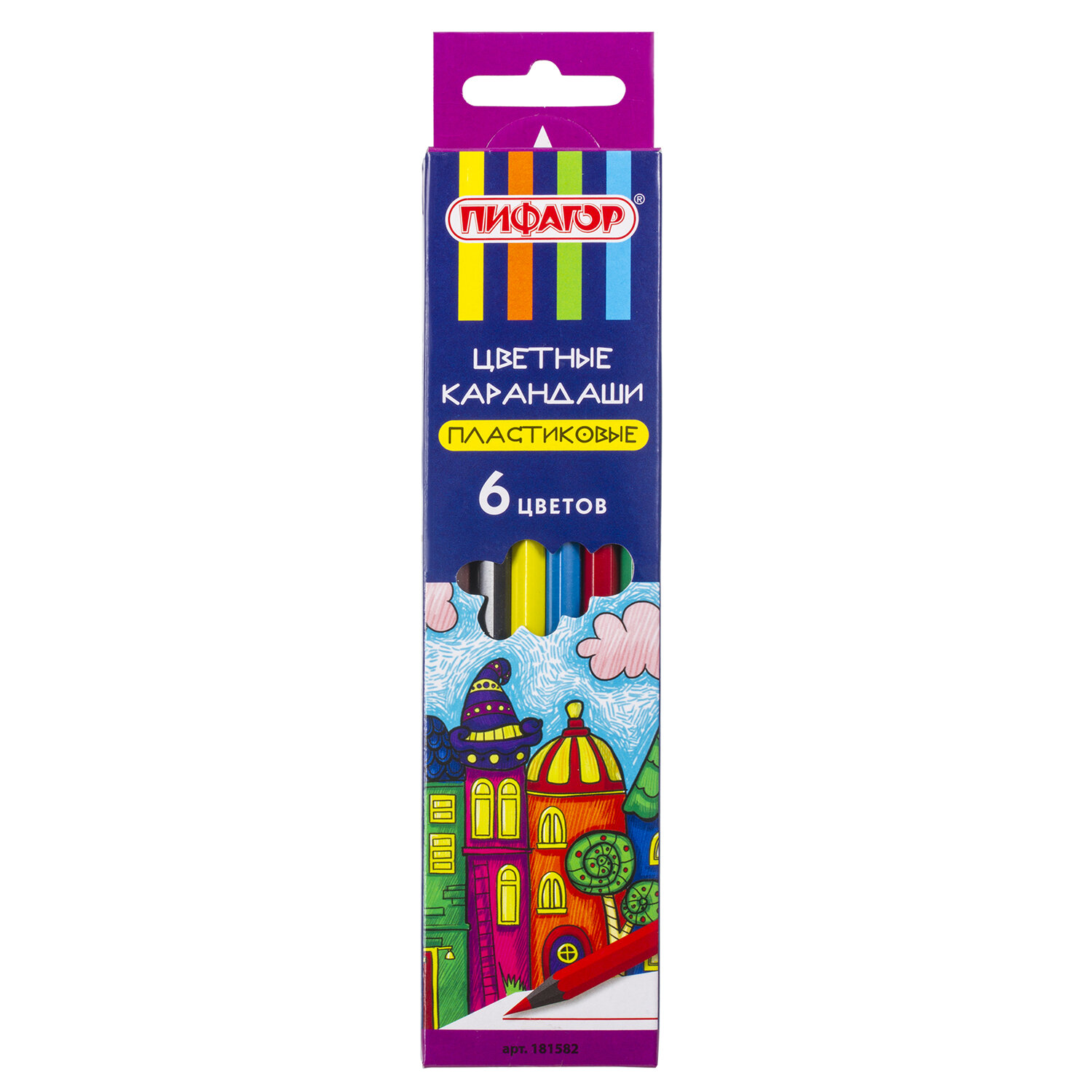 - Карандаши цветные ПИФАГОР "СКАЗОЧНЫЙ ГОРОД", 6 цветов, шестигранные, 181582
