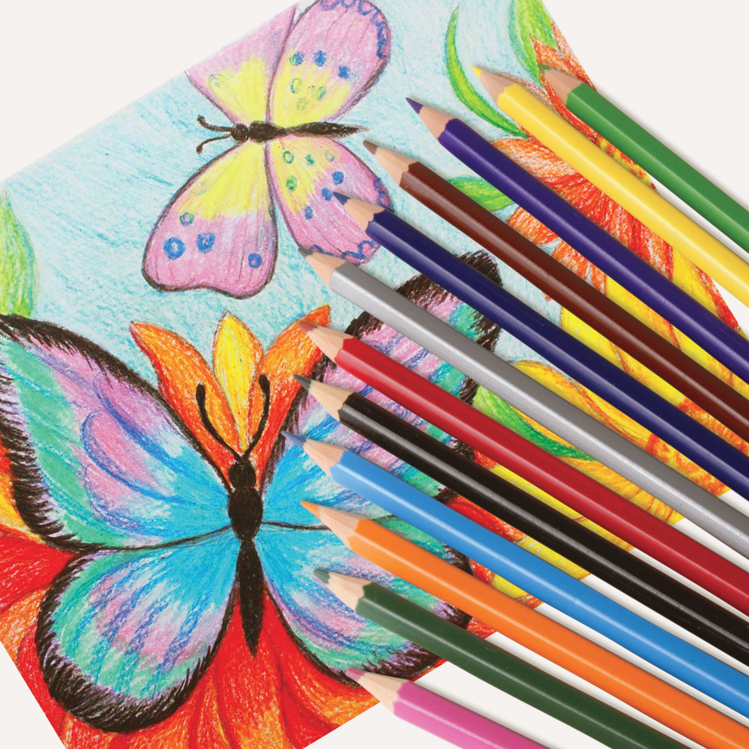Набор состоит из 24 цветов: белый, бордовый, красный, алый, розовый, пурпурный, желтый, канареечный, оранжевый, салатовый, светло-зеленый, зеленый, темно-зеленый, голубой, синий, темно-синий, фиолетовый, темно-фиолетовый, светло-коричневый, коричневый, темно-коричневый, каштановый, серый, черный. Шестигранная форма сечения корпуса позволяет карандашу не скатываться с поверхности стола во время занятий рисованием. Карандаши изготовлены из пластика и имеют лакированный корпус, который при разломе не образует острые края и безопасен для детей. Легко затачиваются. Грифель диаметром 2,65 мм обладает повышенной прочностью. Все карандаши заточены и поставляются в картонной упаковке с европодвесом. Карандаши цветные ПИФАГОР "ЖИРАФ", 24 цвета, шестигранные, 181252