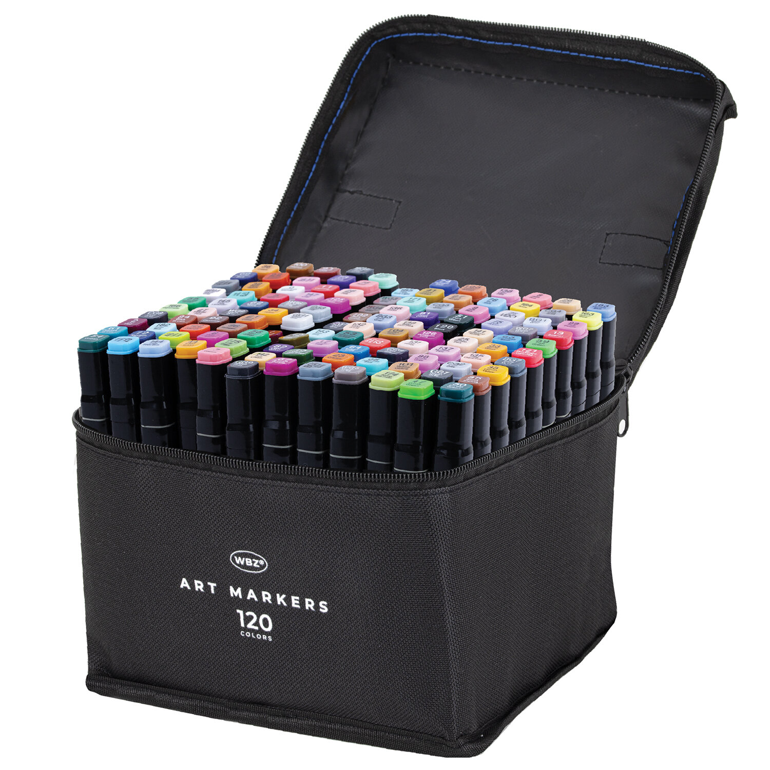 - Маркеры для скетчинга двусторонние, НАБОР 120 шт., текстильный чехол, WBZ, 152576