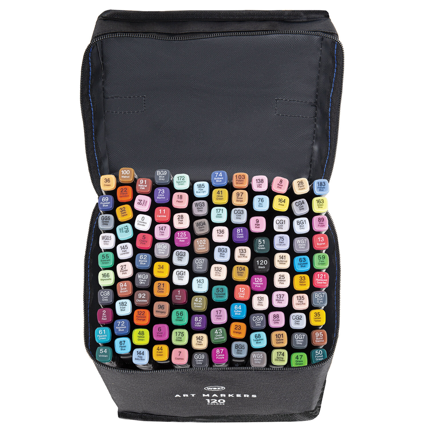 Маркеры для скетчинга двусторонние, НАБОР 120 шт., текстильный чехол, WBZ, 152576