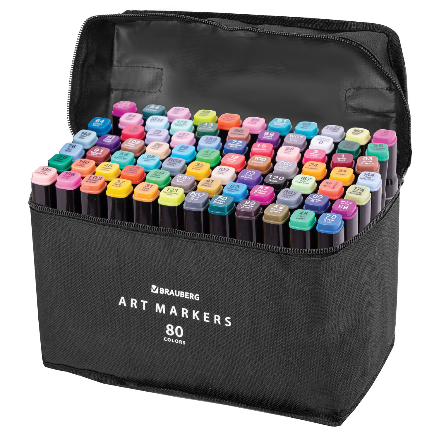 - Маркеры для скетчинга двусторонние, НАБОР 80 шт., текстильный чехол, BRAUBERG, 152233