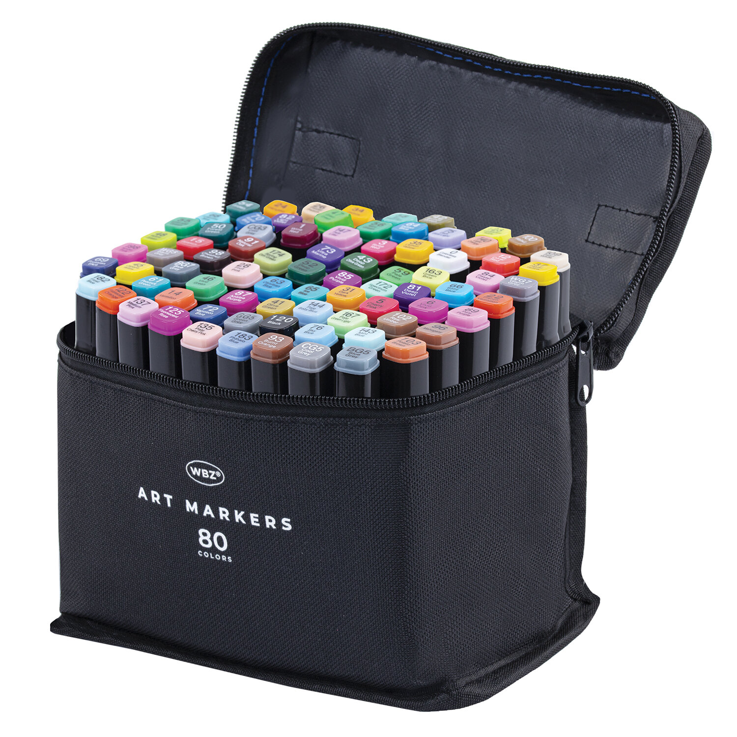 - Маркеры для скетчинга двусторонние, НАБОР 80 шт, текстильный чехол, WBZ, 152575