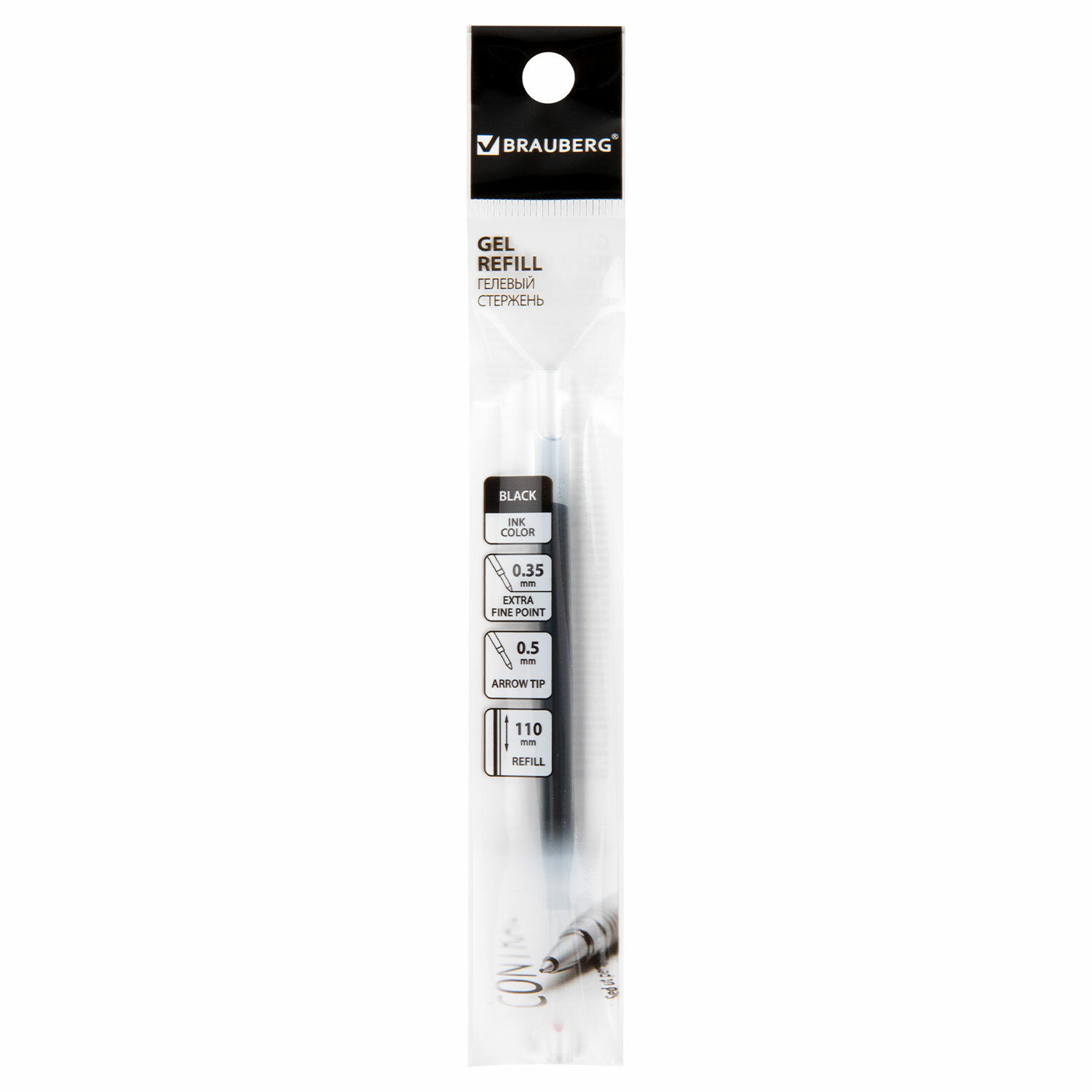Стержень гелевый BRAUBERG 110 мм, ЧЕРНЫЙ, узел 0,5 мм, линия письма 0,35 мм, 170173