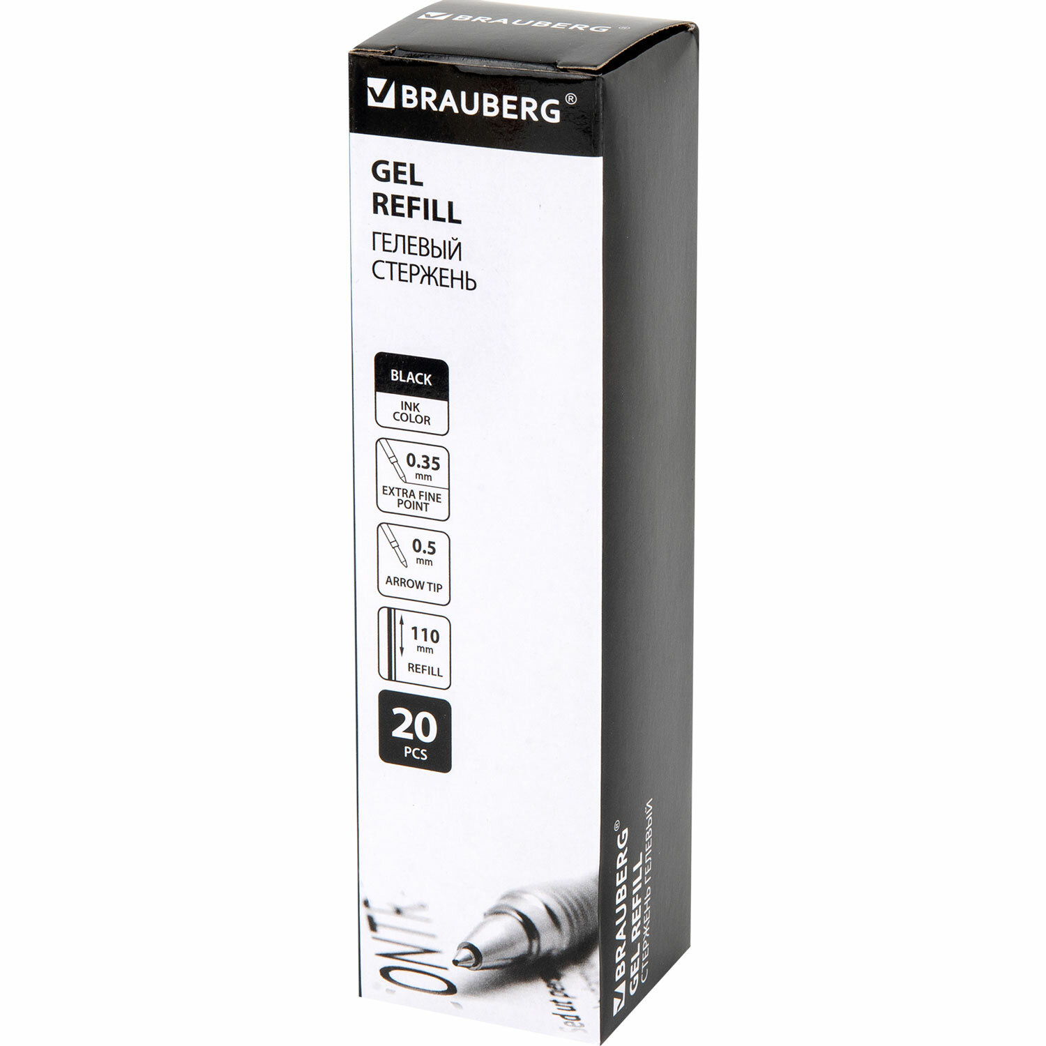 - Стержень гелевый BRAUBERG 110 мм, ЧЕРНЫЙ, узел 0,5 мм, линия письма 0,35 мм, 170173