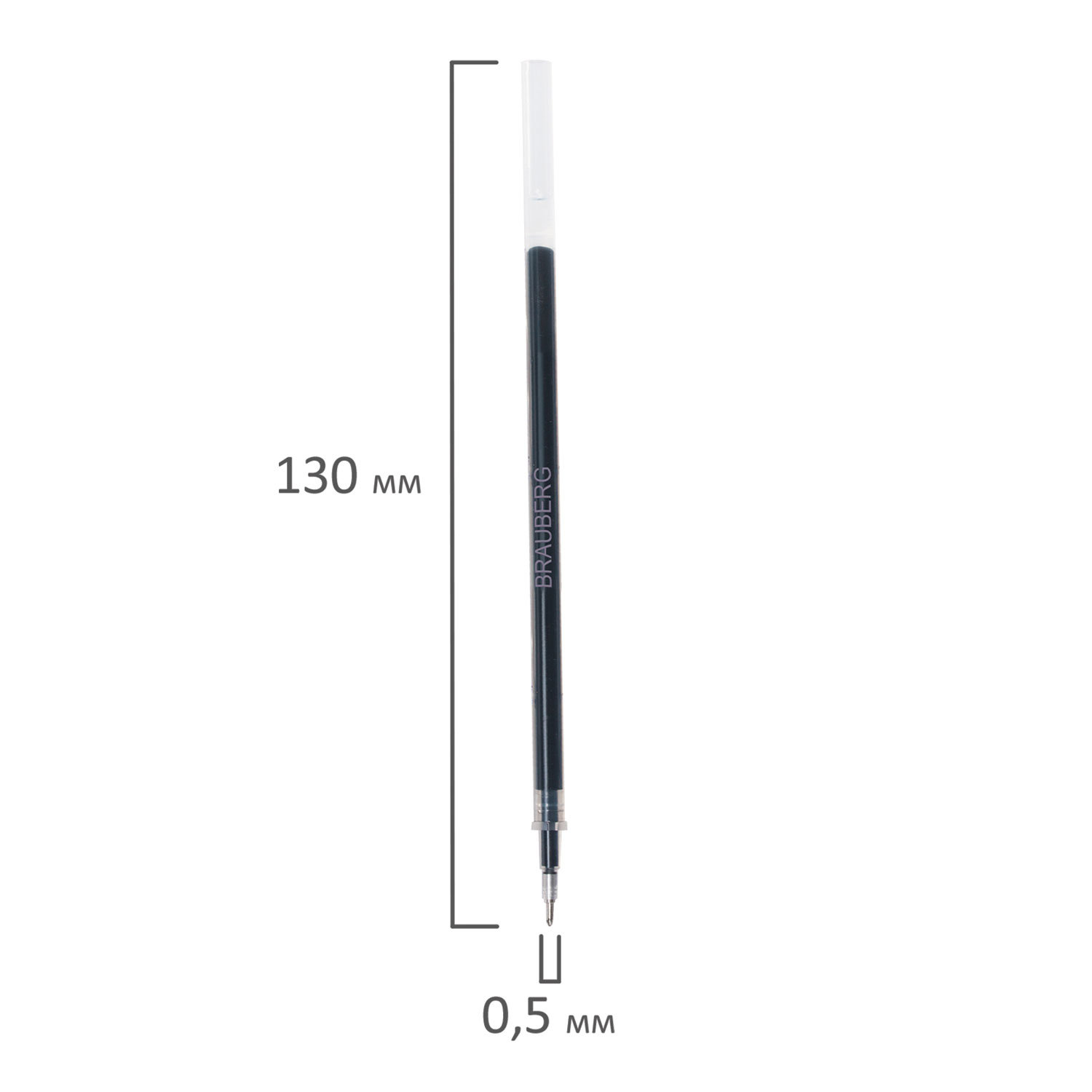 - Стержень гелевый BRAUBERG 130 мм, ЧЕРНЫЙ, игольчатый узел 0,5 мм, линия письма 0,35 мм, 170170