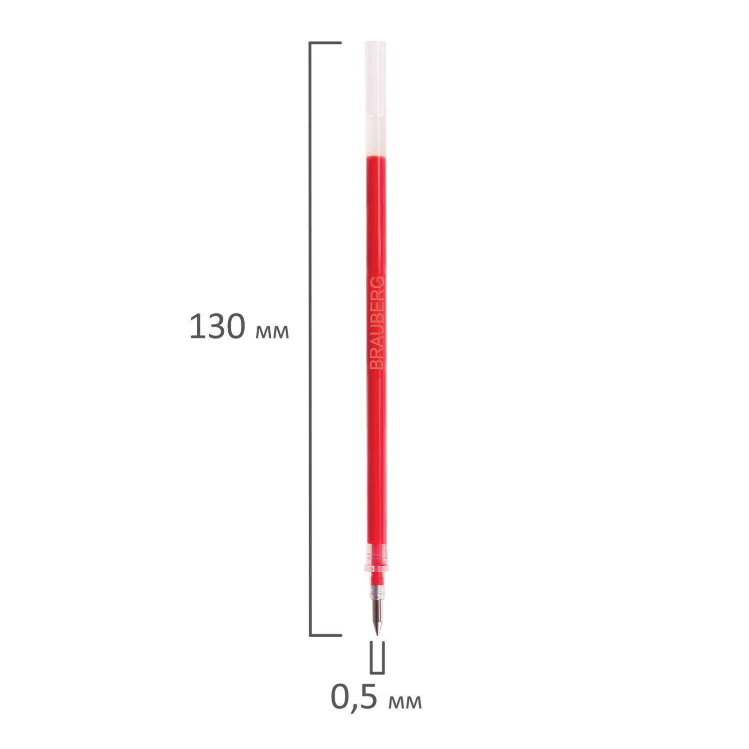 Стержень гелевый BRAUBERG 130 мм, КРАСНЫЙ, узел 0,5 мм, линия письма 0,35 мм, 170168