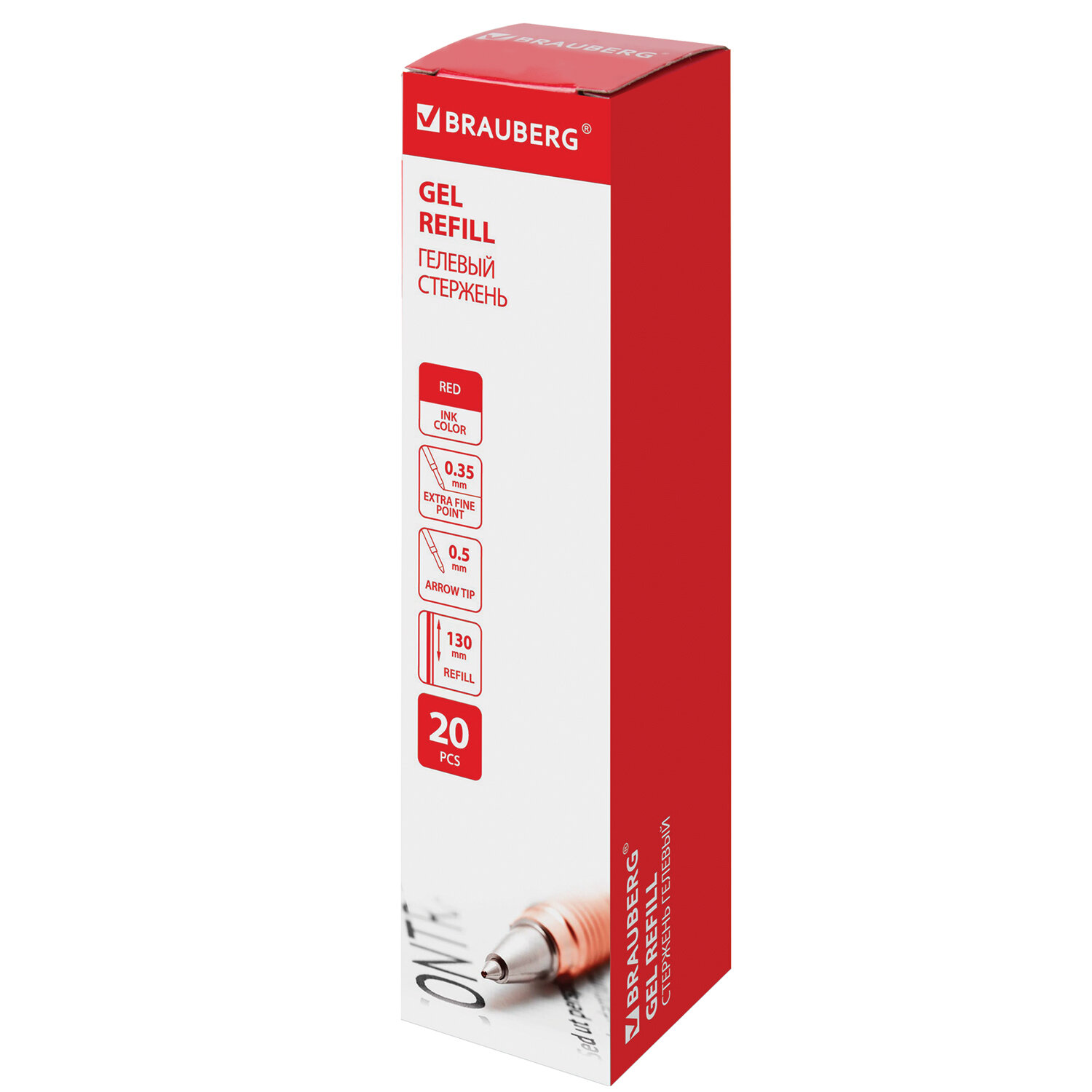 - Стержень гелевый BRAUBERG 130 мм, КРАСНЫЙ, узел 0,5 мм, линия письма 0,35 мм, 170168