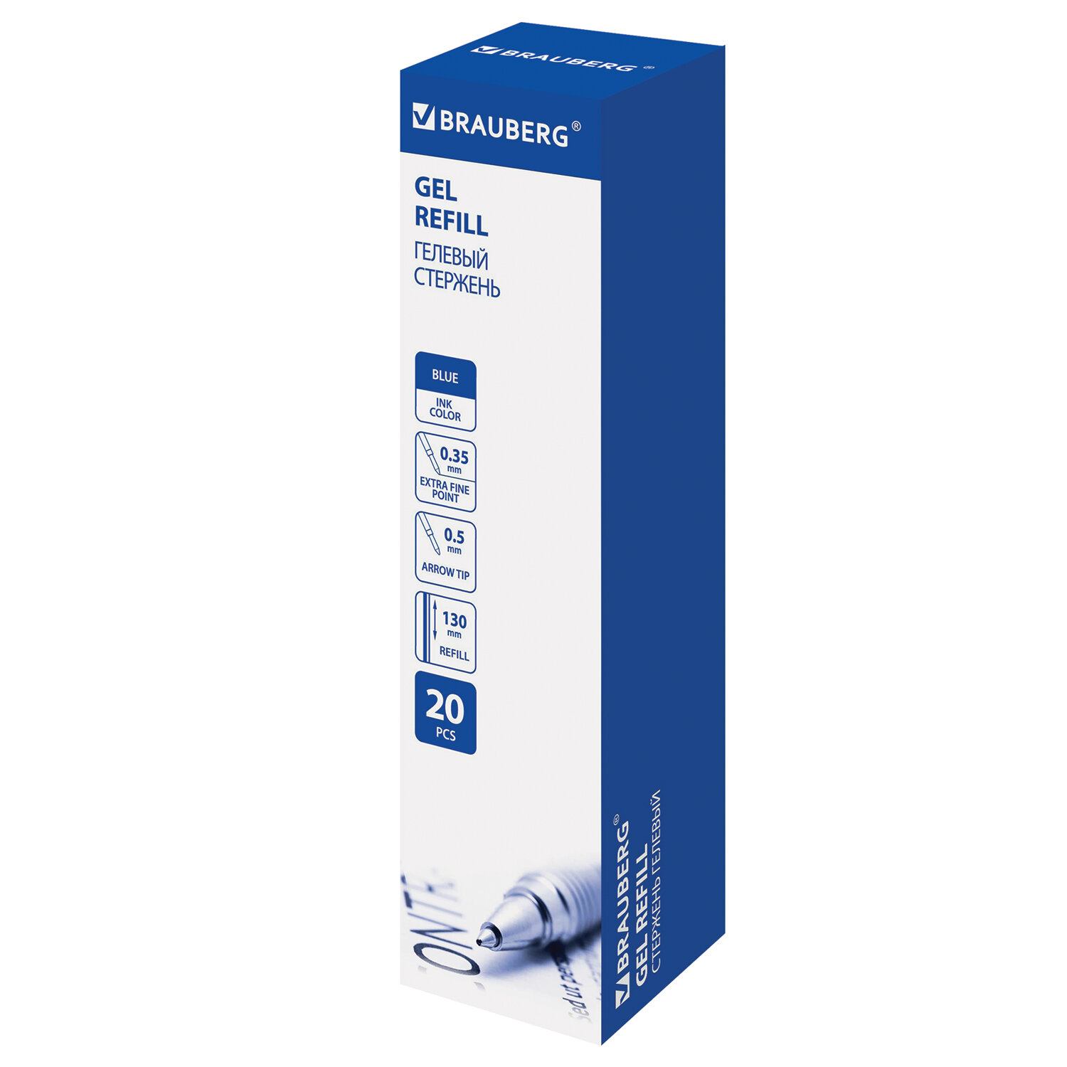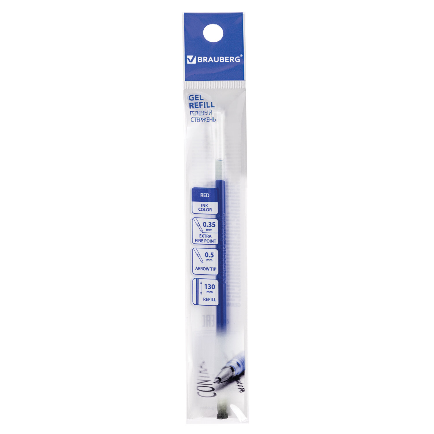 - Стержень гелевый BRAUBERG 130 мм, СИНИЙ, узел 0,5 мм, линия письма 0,35 мм, 170166