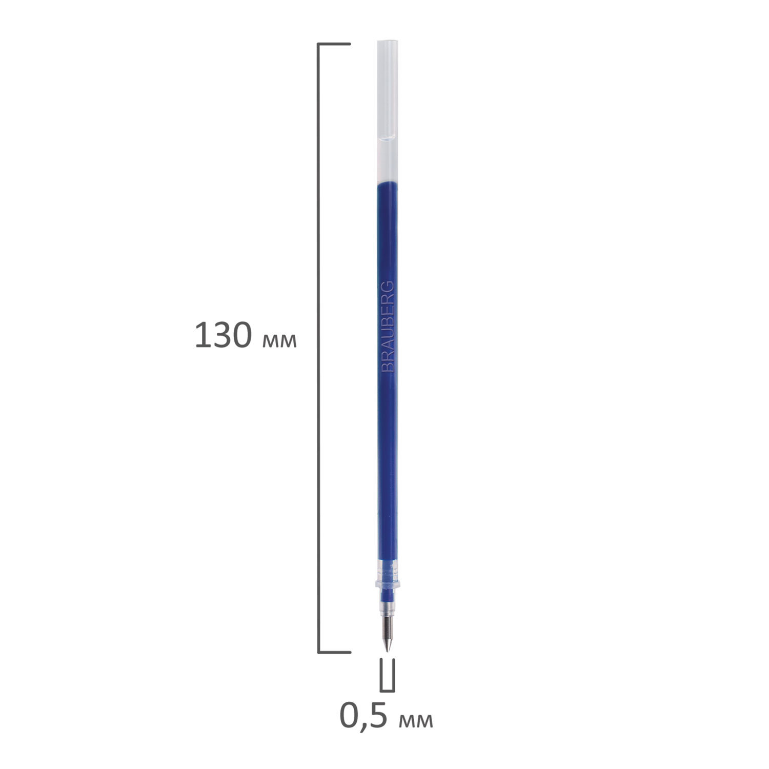 Стержень гелевый BRAUBERG 130 мм, СИНИЙ, узел 0,5 мм, линия письма 0,35 мм, 170166