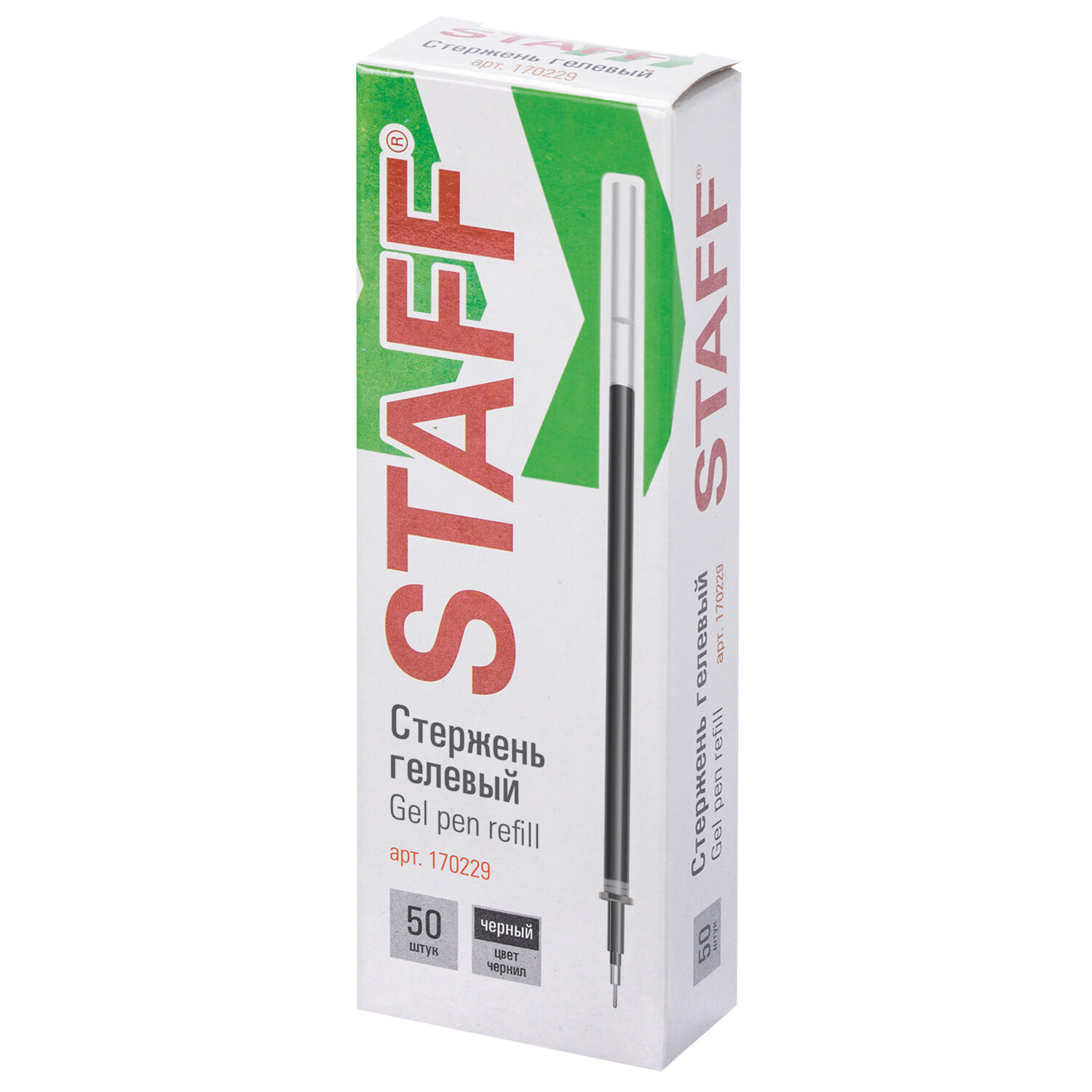 - Стержень гелевый STAFF "Basic" GPR-229, 135 мм, ЧЕРНЫЙ, игольчатый узел 0,5 мм, линия 0,35 мм, 170229