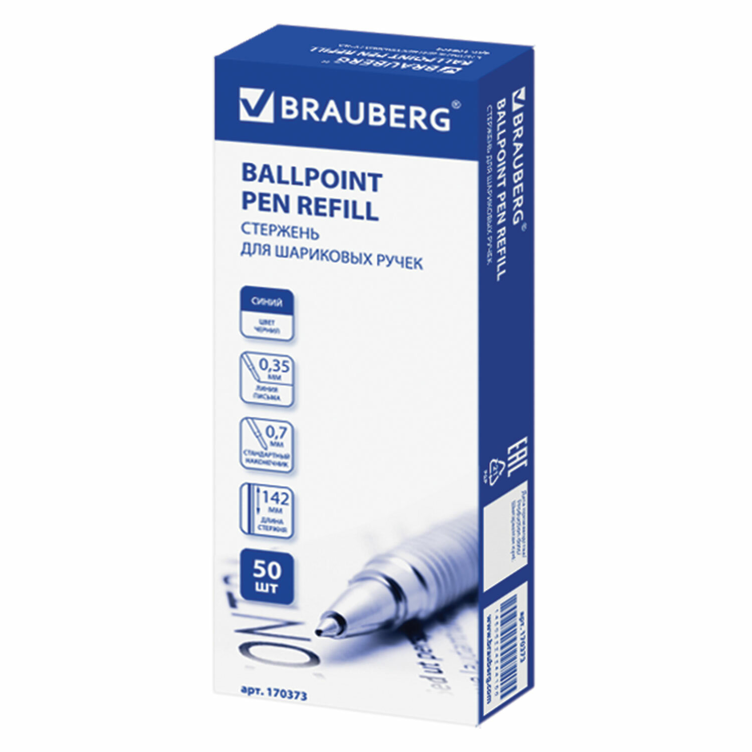 - Стержень шариковый BRAUBERG 142 мм, СИНИЙ, чернила DOKUMENTAL (Германия), евронаконечик, 0,35 мм,170373, BP109R