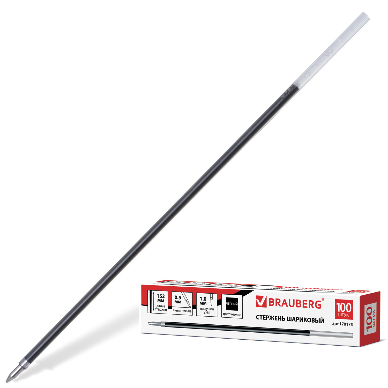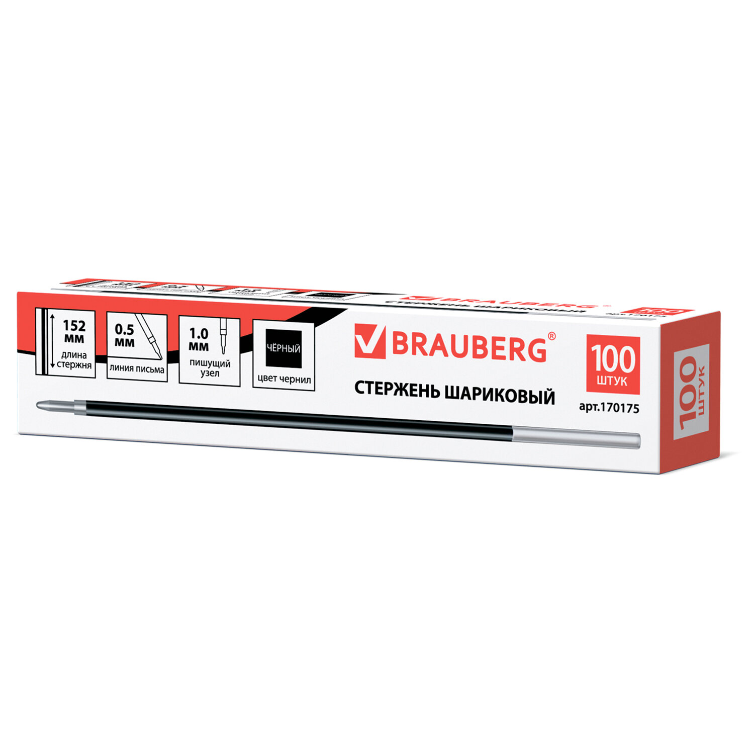 - Стержень шариковый BRAUBERG 152 мм, ЧЕРНЫЙ, узел 1 мм, линия письма 0,5 мм, 170175