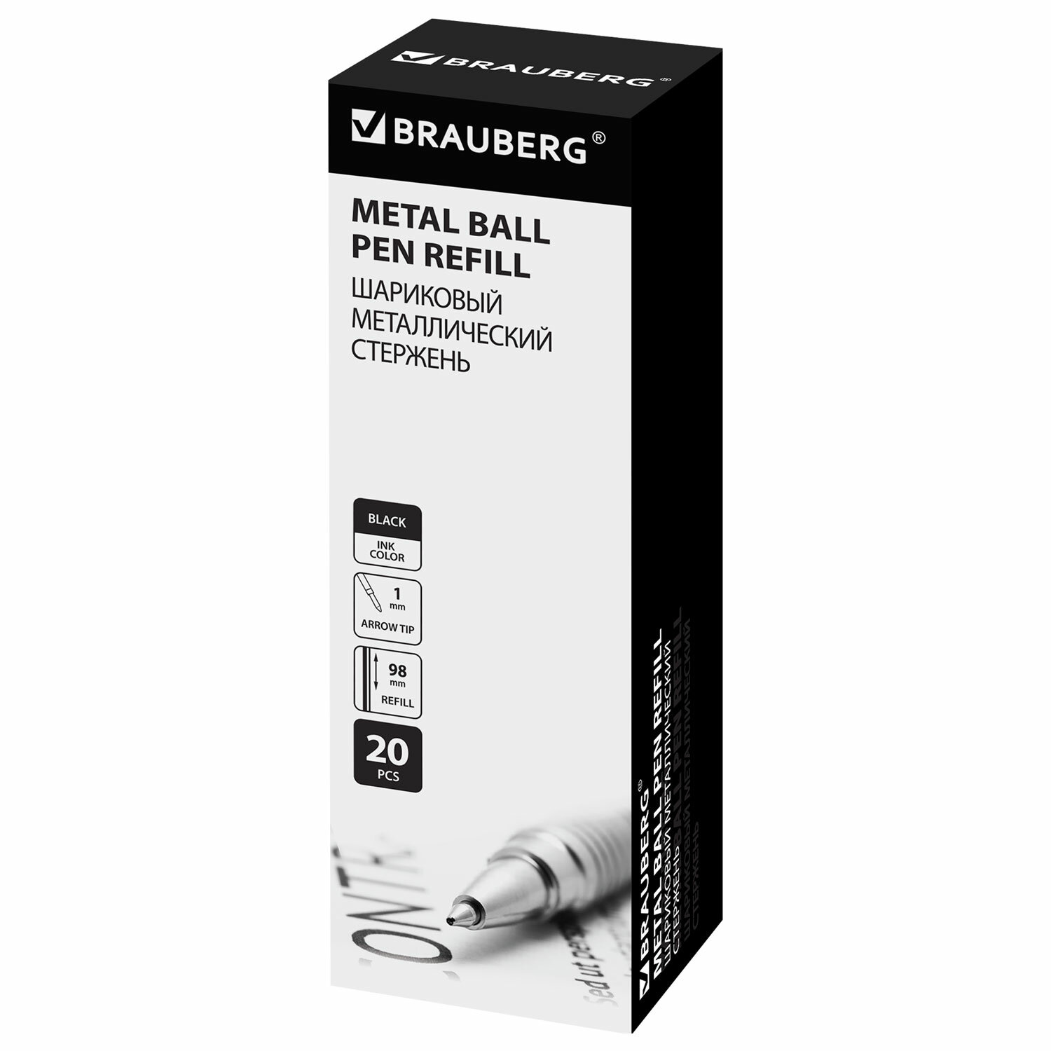 - Стержень шариковый BRAUBERG, тип PARKER, металлический, 98 мм, линия письма 0,5 мм, подвес, черный, 170200