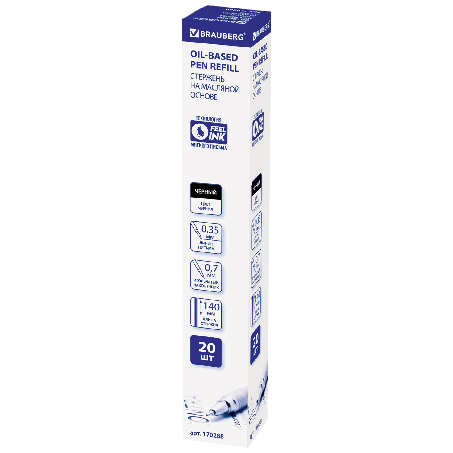 - Стержень шариковый масляный BRAUBERG, 140 мм, ЧЕРНЫЙ, игольчатый узел 0,7 мм, линия письма 0,35 мм, 170288