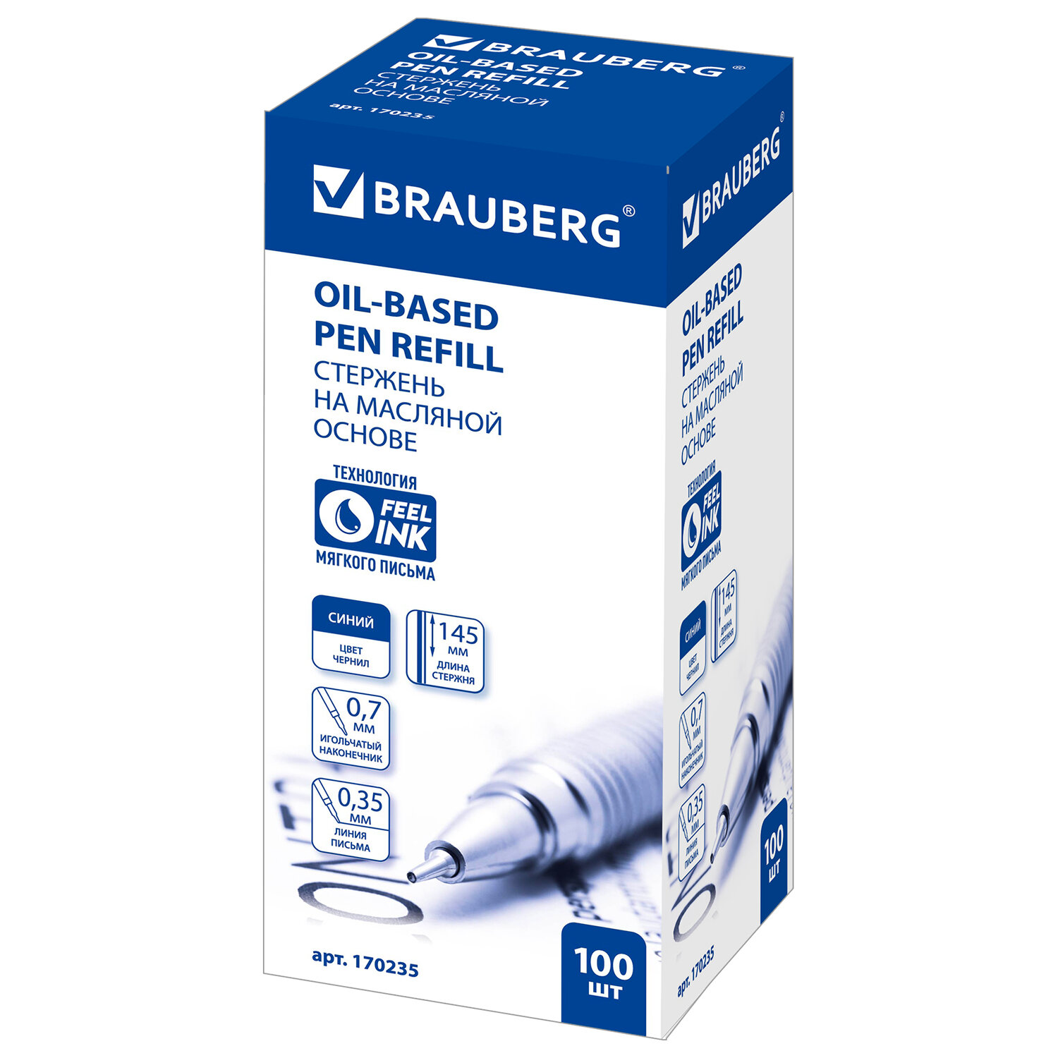 - Стержень шариковый масляный BRAUBERG, 145 мм, СИНИЙ, игольчатый узел 0,7 мм, линия письма 0,35 мм, 170235